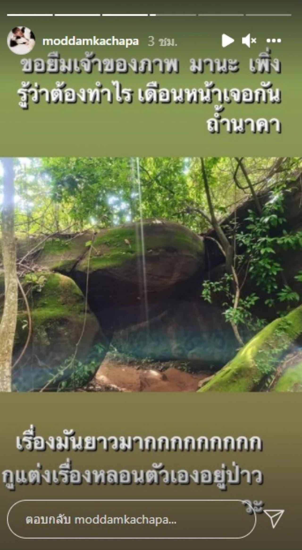 โดย มดดำ คชาภา ก็ระบุข้อความเพิ่มเติมว่า "ขอบคุณน้องที่ส่งรูปนี้มา ขอยืมเจ้าของภาพมานะ เพิ่งรู้ว่าต้องทำไร เดือนหน้าเจอกัน ถ้ำนาคา เรื่องมันยาวมากกกกก กูแต่งเรื่องหลอนตัวเองอยู่ป่าววะ"