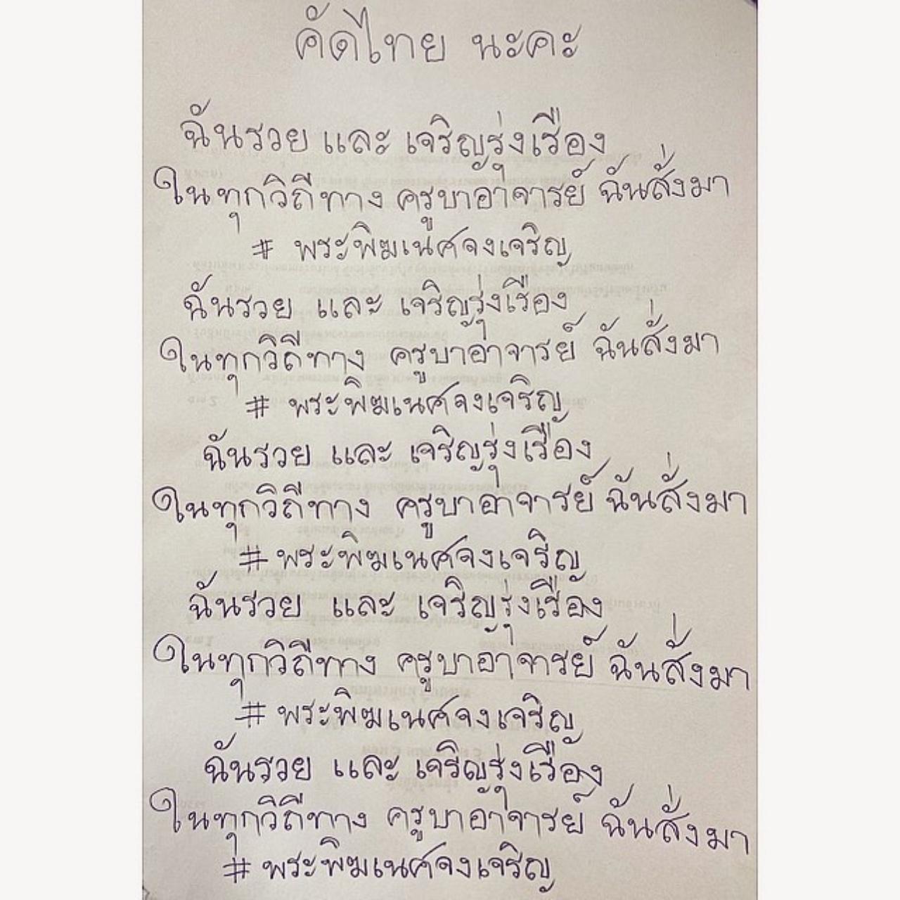 ซึ่งชาวเน็ตคนดังกล่าวก็ได้เข้ามาคอมเมนต์ต่ออีกว่า "โอเคค่ะ ถึงมันจะไม่ได้เป็นเรียงความแต่เราอยากให้คุณได้เข้าใจในการใช้ภาษาไทยที่ถูกต้องเฉยๆ น่ะค่ะ อย่างที่เราบอกไปในเม้นบนเลยค่ะ เราก็ไม่ใช่คนที่ใช้ภาษาไทยถูกต้องเสมอค่ะ มีพิมพ์ผิดบ้างไม่ถูกบ้างแต่เราจะทำให้ประโยคที่เราพิมพ์ออกมาถูกต้องที่สุดเท่านั้นค่ะ"
