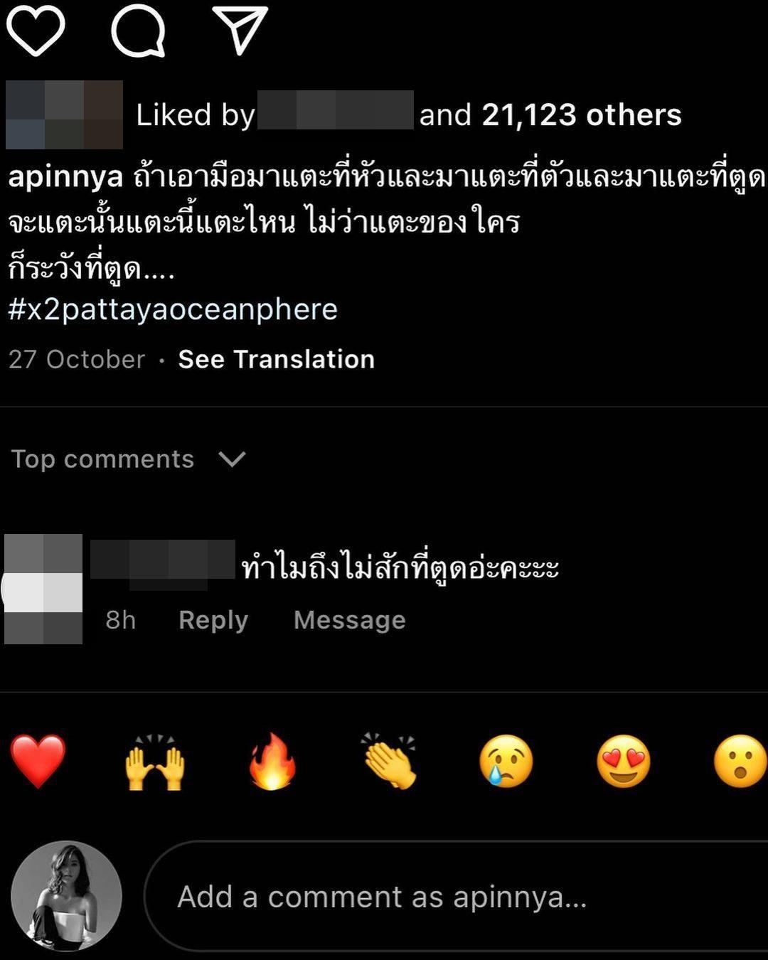 และงานนี้สายป่านก็ได้แคปข้อความดังกล่าวมาโพสต์ลงไอจี พร้อมเขียนแคปชั่นตอบกลับสั้นๆ แต่ฟาดจุกๆ ไปว่า “ป่านสักที่ตัว ไปหนักที่หัวคนอื่น “คำถามจากสมองหรือร่องตูด”!”.