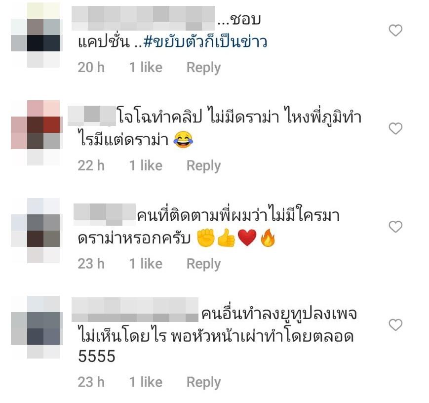 โดยมีแฟนๆ ดีเจภูมิที่เรียกเจ้าตัวว่าหัวหน้าเผ่าเข้ามาให้กำลังใจ อาทิ คนอื่นทำลงยูทูปลงเพจไม่เห็นโดนไร พอหัวหน้าเผ่าทำโดนตลอด 5555, ...ชอบ แคปชั่น ..#ขยับตัวก็เป็นข่าว, อย่าไปให้ราคาพวกไร้สาระเลยครับ เสียเวลา, โจโฉทำคลิป ไม่มีดราม่า ไหงพี่ภูมิทำไรมีแต่ดราม่า ฯลฯ