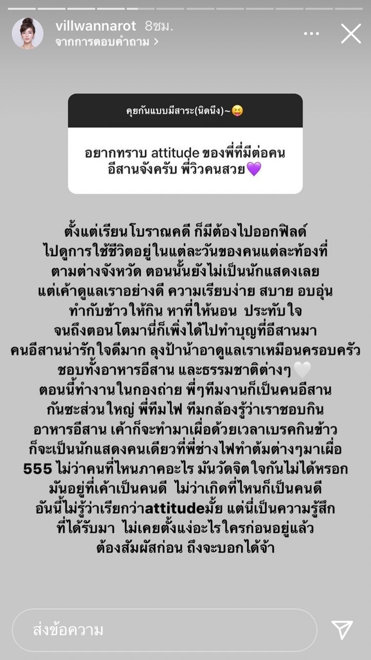ล่าสุดก็ได้มีคนนำประเด็นนี้ไปถามนางเอกสาว วิว วรรณรท ว่าคิดอย่างไรกับคนอีสาน ซึ่ง วิว ก็ได้ตอบกลับเรื่องนี้ผ่านทางไอจีสตอรี่ว่า