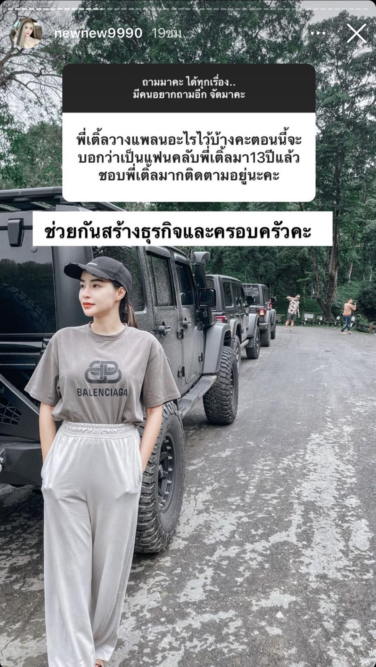 และคำถามที่สาว นิวนิว เอวเด้ง เลือกมาคือ "พี่เติ้ลวางแพลนอะไรไว้บ้างคะ ตอนนี้จะบอกว่าเป็นแฟนคลับพี่เติ้ลมา 13 ปีแล้ว ชอบพี่เติ้ลมาก ติดตามอยู่นะคะ" ซึ่งนิวนิวก็ตอบคำถามนี้ว่า "ช่วยกันสร้างธุรกิจและครอบครัวค่ะ"