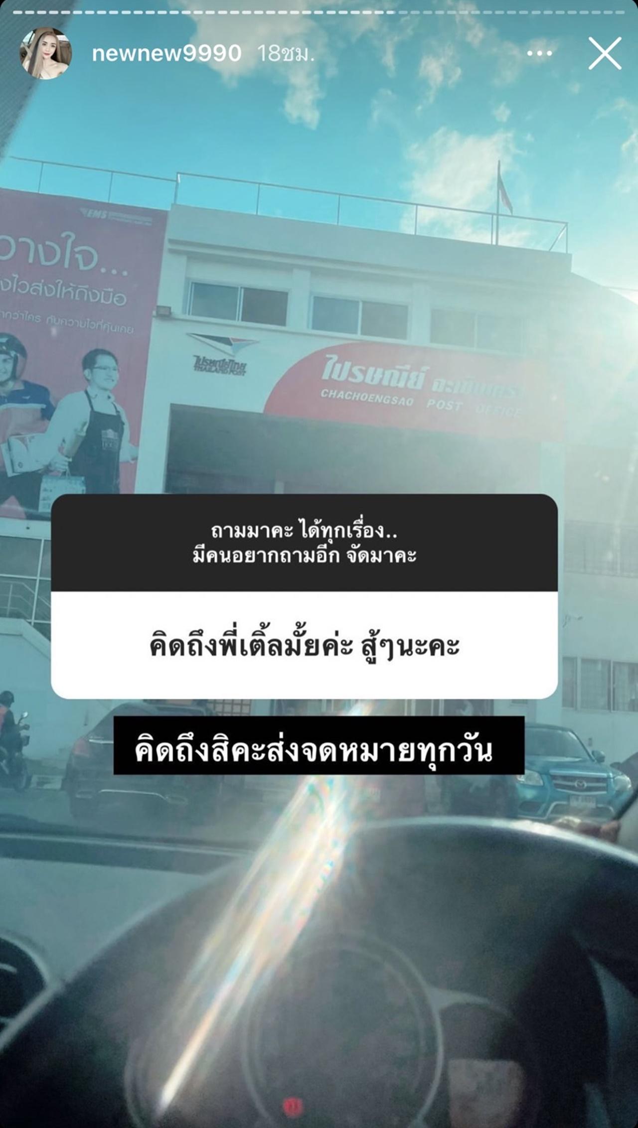 กับอีกหนึ่งคำถามที่ถามว่า "คิดถึงพี่เติ้ลมั้ยคะ สู้ๆ นะคะ" ซึ่งเจ้าตัวก็รีบตอบทันทีว่า "คิดถึงสิคะ ส่งจดหมายทุกวัน"