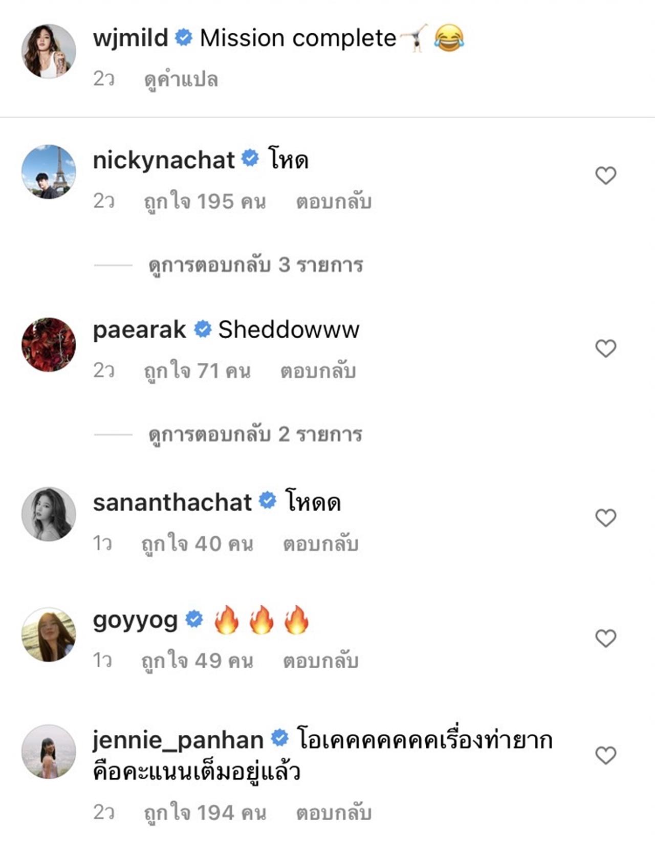 เมื่อ มายด์ ได้ไปเที่ยวพักผ่อนที่ทะเล ก็ไม่พลาดที่จะหยิบชุดว่ายน้ำสวยๆ ไปใส่ แต่งานนี้ก็ทำเอาหลายคนถึงกับปรบมือให้แบบรัวๆ เลยทีเดียว เจ้าตัวมาในชุดทูพีซสีแดงสด ตัดกับผิวขาวใส โพสท่ายากอยู่บนเรือยอร์ช โดยภาพดังกล่าวนั้นเป็นภาพที่ทำท่าหกสูง แบบไม่ธรรมดาจนโลกต้องจดจำ และเขียนแคปชั่นว่า "Mission complete" เรียกความฮือฮาอย่างมาก