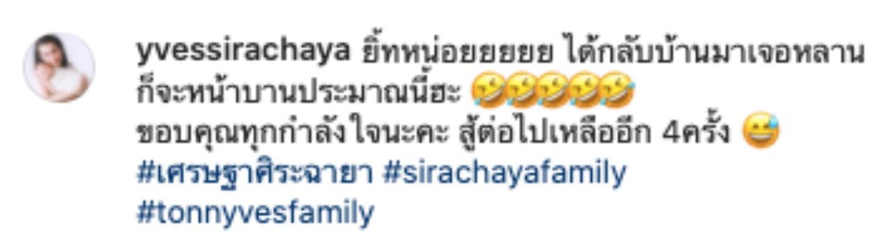 "ยิ้มหน่อยยยยย ได้กลับบ้านมาเจอหลานก็จะหน้าบานประมาณนี้ฮะ ขอบคุณทุกกำลังใจนะคะ สู้ต่อไปเหลืออีก 4ครั้ง #เศรษฐาศิระฉายา #sirachayafamily #tonnyvesfamily"