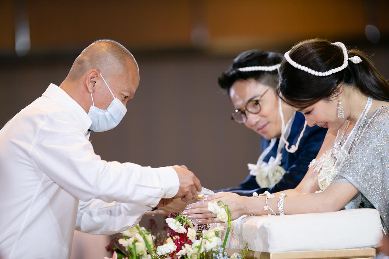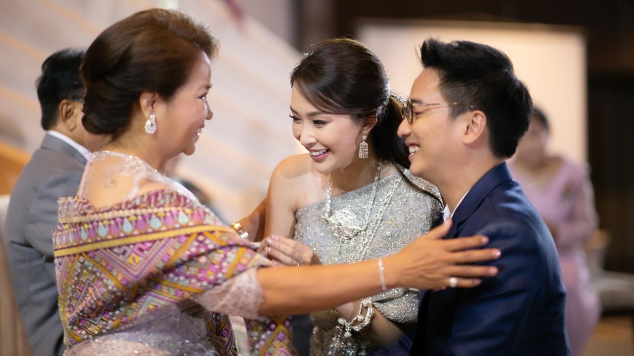 พิธีเช้าเริ่มต้นขึ้นอย่างงดงามกับบรรยากาศในงานวิวาห์ที่เต็มไปด้วยความชื่นมื่นด้วยพิธียกขันหมากแบบไทย และยกน้ำชาแบบจีน ซึ่งงานนี้เพื่อนคนสนิทในวงการเพลงต่างมาร่วมแสดงความยินดีกันอย่างอบอุ่น อาทิ ศิลปินจากค่าย Smallroom วง zeal และแก๊งสามช่า หม่ำ-เท่ง-โหน่ง เป็นต้น