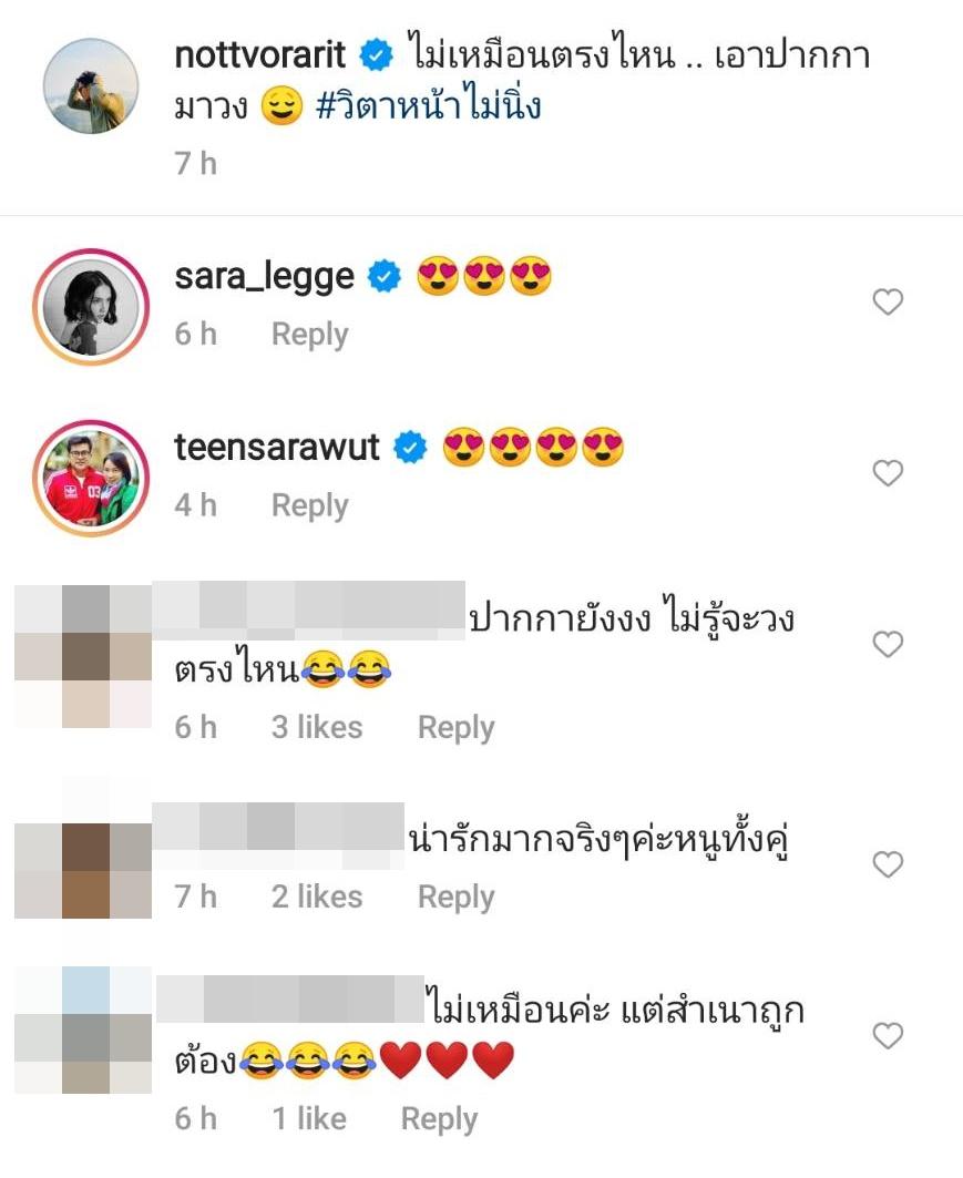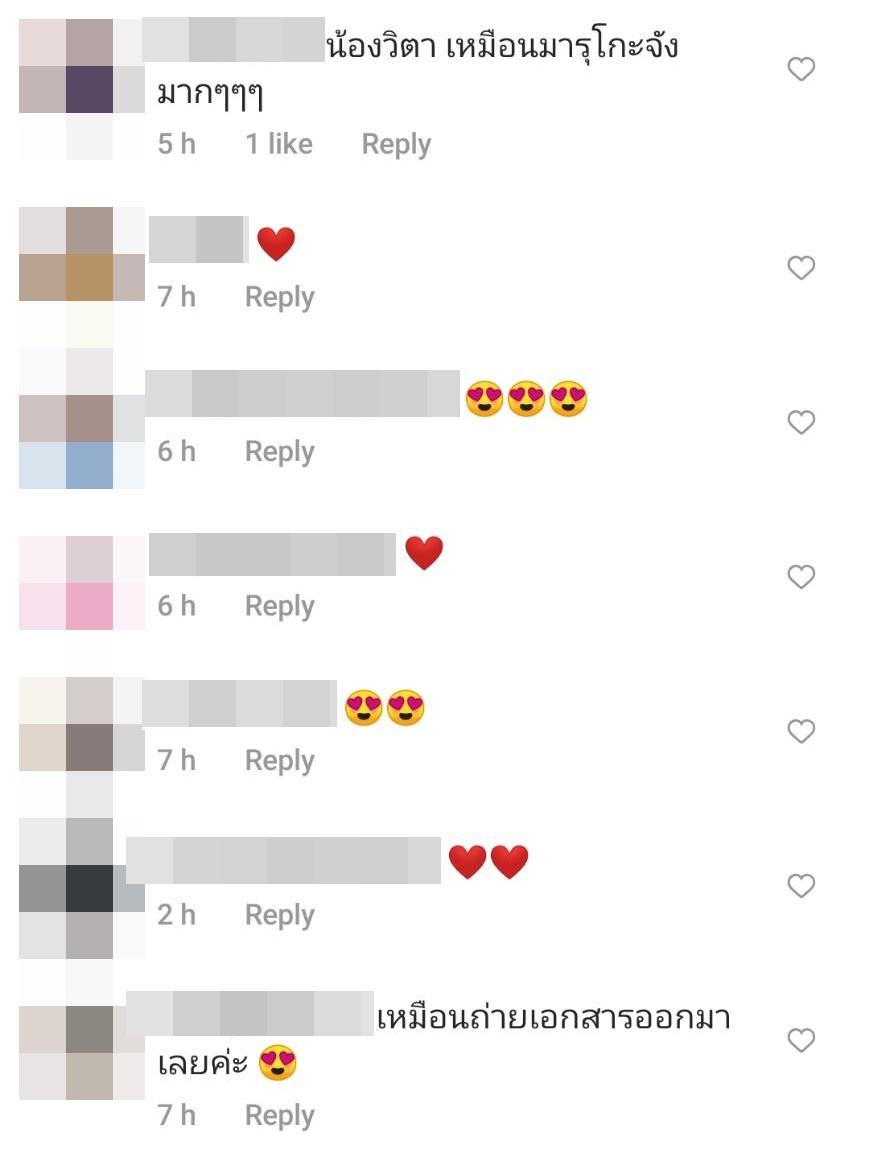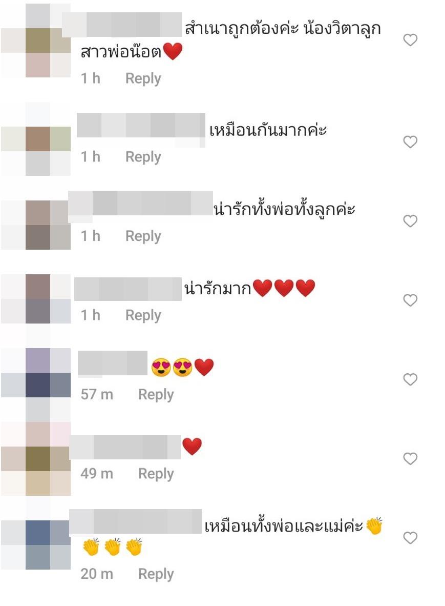ทำเอาแฟนๆ ที่ได้เห็นภาพนี้ต่างเข้ามาคอมเมนต์ชมกันเพียบ อาทิ ปากกายังงง ไม่รู้จะวงตรงไหน, ไม่เหมือนค่ะ แต่สำเนาถูกต้อง, น่ารักจังเลยค่า, น้องวิตา เหมือนมารุโกะจังมากๆๆๆ, เหมือนถ่ายเอกสารออกมาเลยค่ะ, สำเนาถูกต้องค่ะ น้องวิตาลูกสาวพ่อน๊อต ฯลฯ.