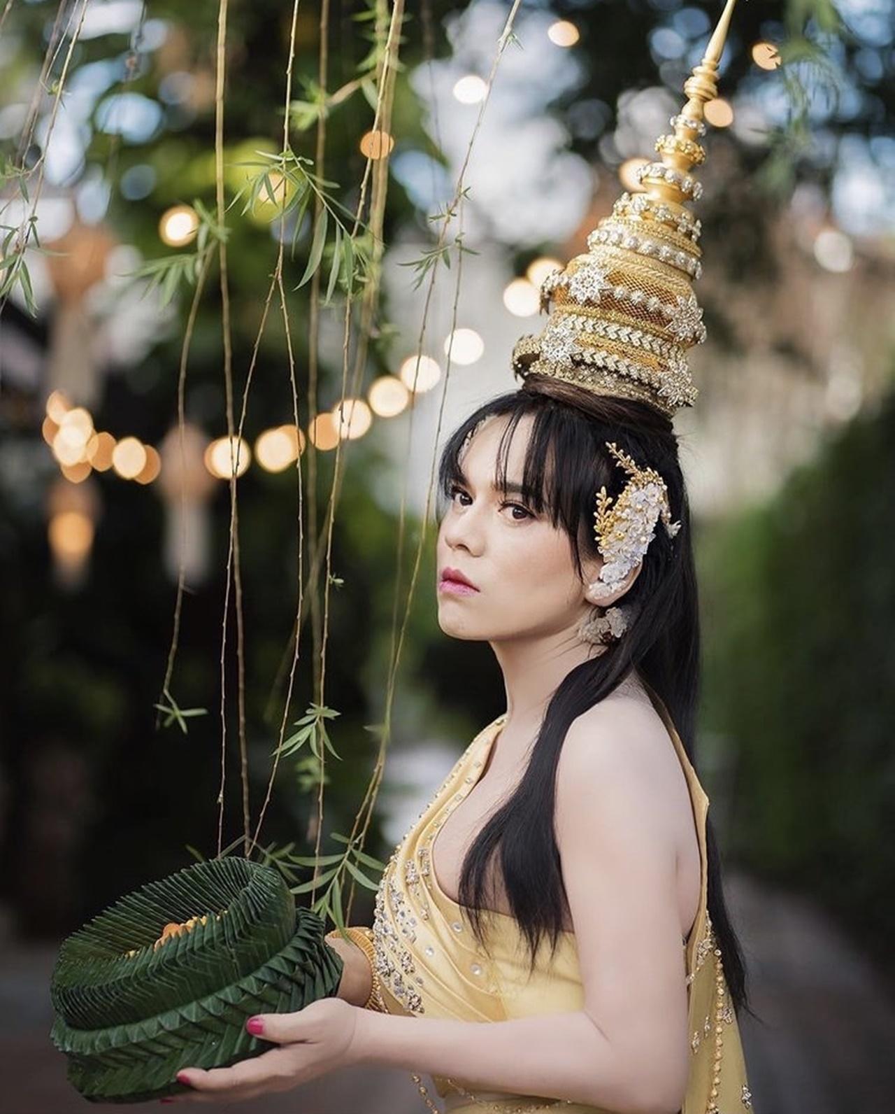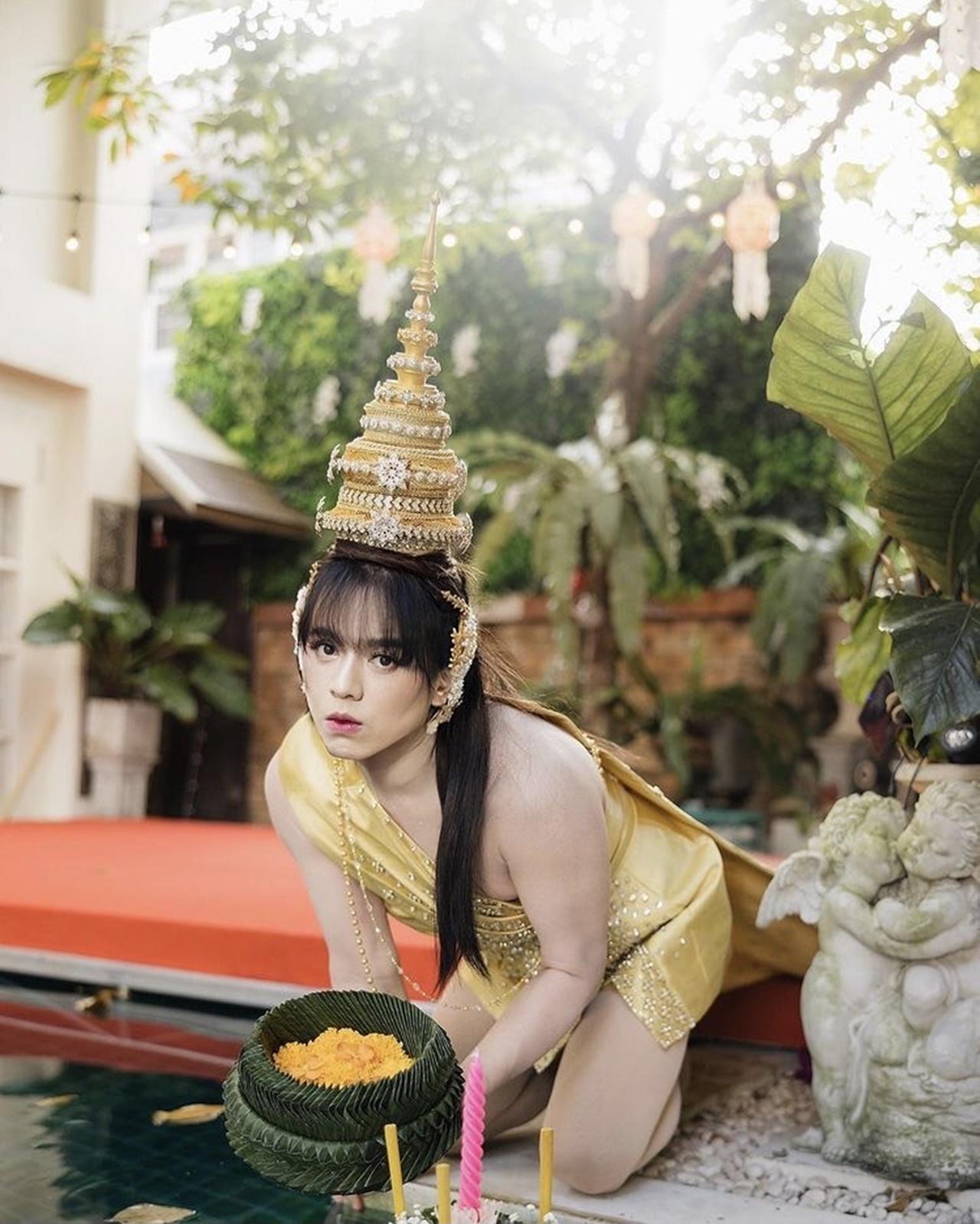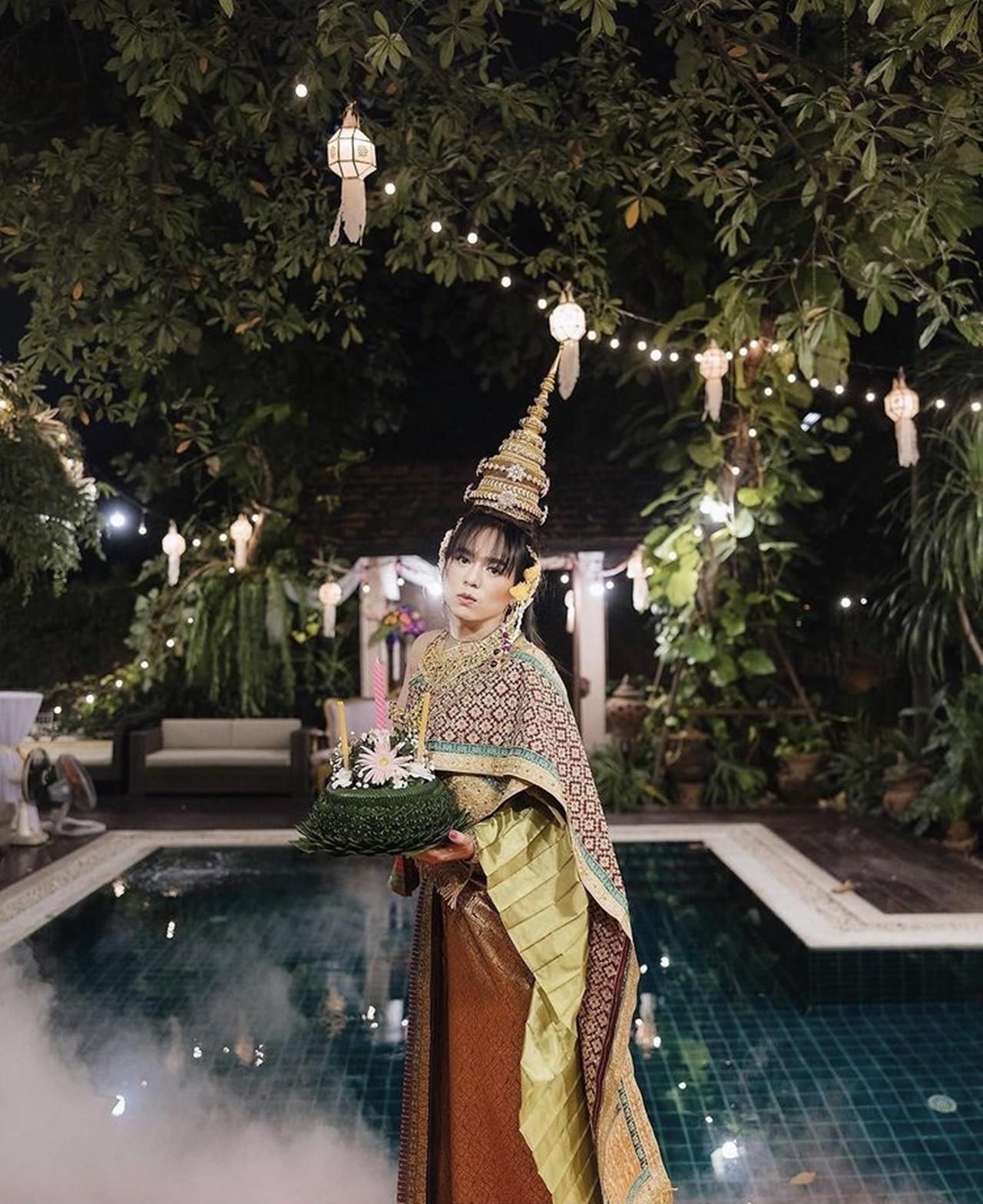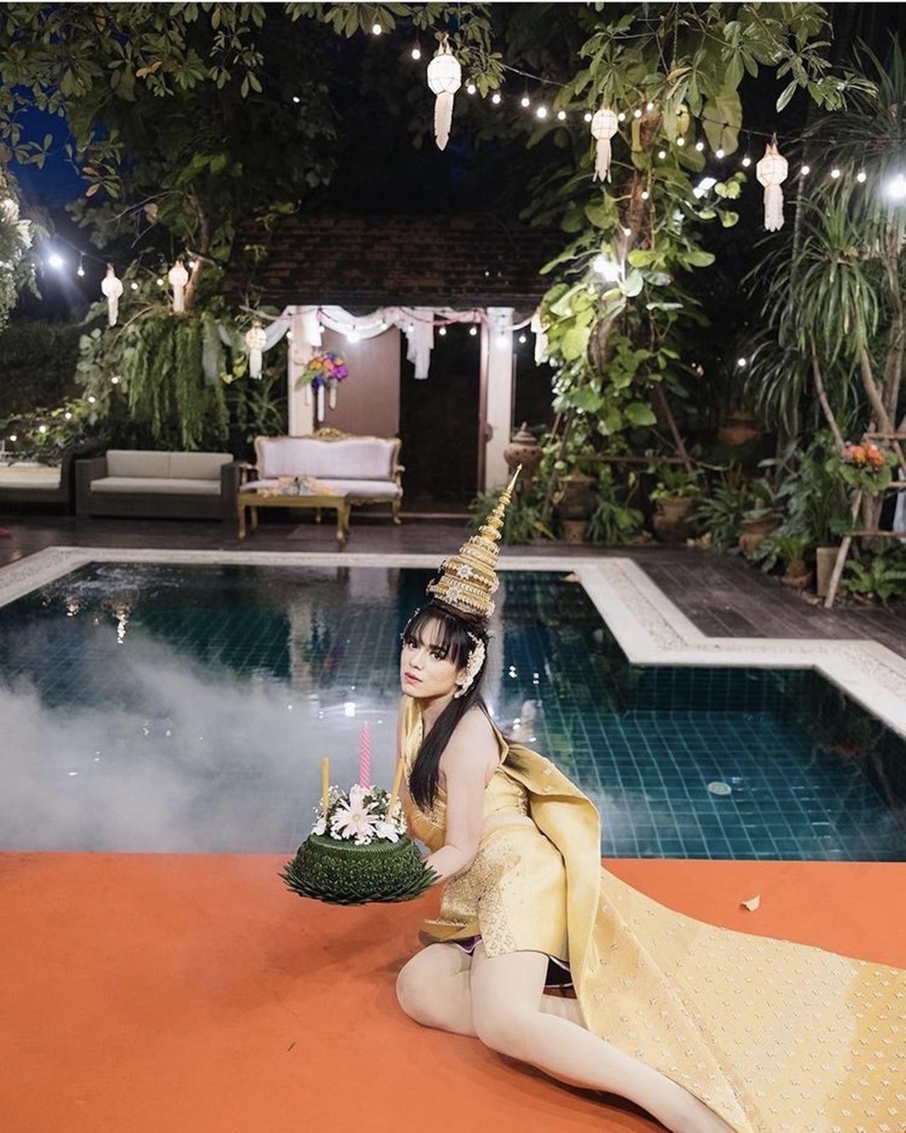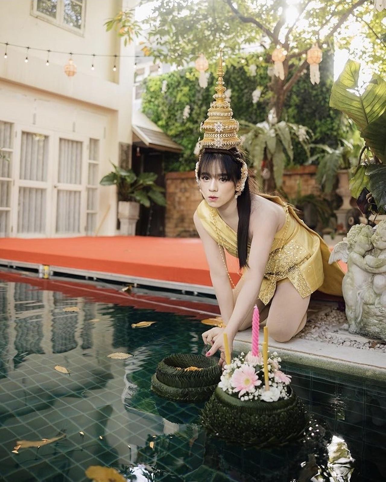 เมื่อเจ้าตัวมาในชุดไทยแบบจัดเต็ม ขนาดลอยกระทงอยู่ที่สระน้ำหน้าบ้าน ไม่ได้ออกไปไหน ยังจัดเต็มสุดๆ ทั้งชุด หน้า ผม ชนิดที่เรียกว่า ปังแบบสุดๆ ต้องบอกเลยว่า สวยและเปล่งออร่ามากๆ สวยชนิดที่ว่า แทบจำไม่ได้ แม้อาจจะมีแต่งภาพบ้าง แต่บอกเลยจ้าว่าไม่มีโป๊ะแน่นอน.
