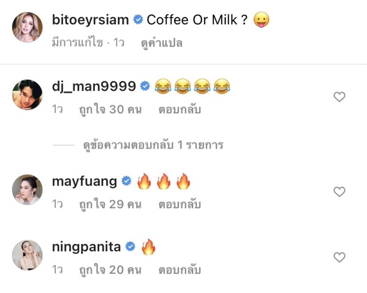 ล่าสุดก็ได้ควงกันไปเที่ยวพักผ่อนที่หัวหิน และได้หยิบชุดว่ายน้ำสุดเเซ่บออกมาสวมใส่เช่นเคย เเต่ที่ทำเอาหลายๆ คนถึงกับว้าว ก็คือภาพเด็ดพร้อมแคปชั่นสุดแซ่บ "Coffee Or Milk ?" โดยภาพดังกล่าวเป็นภาพที่ ดีเจแมน กำลังอุ้ม ใบเตย อยู่ที่ริมสระว่ายน้ำ