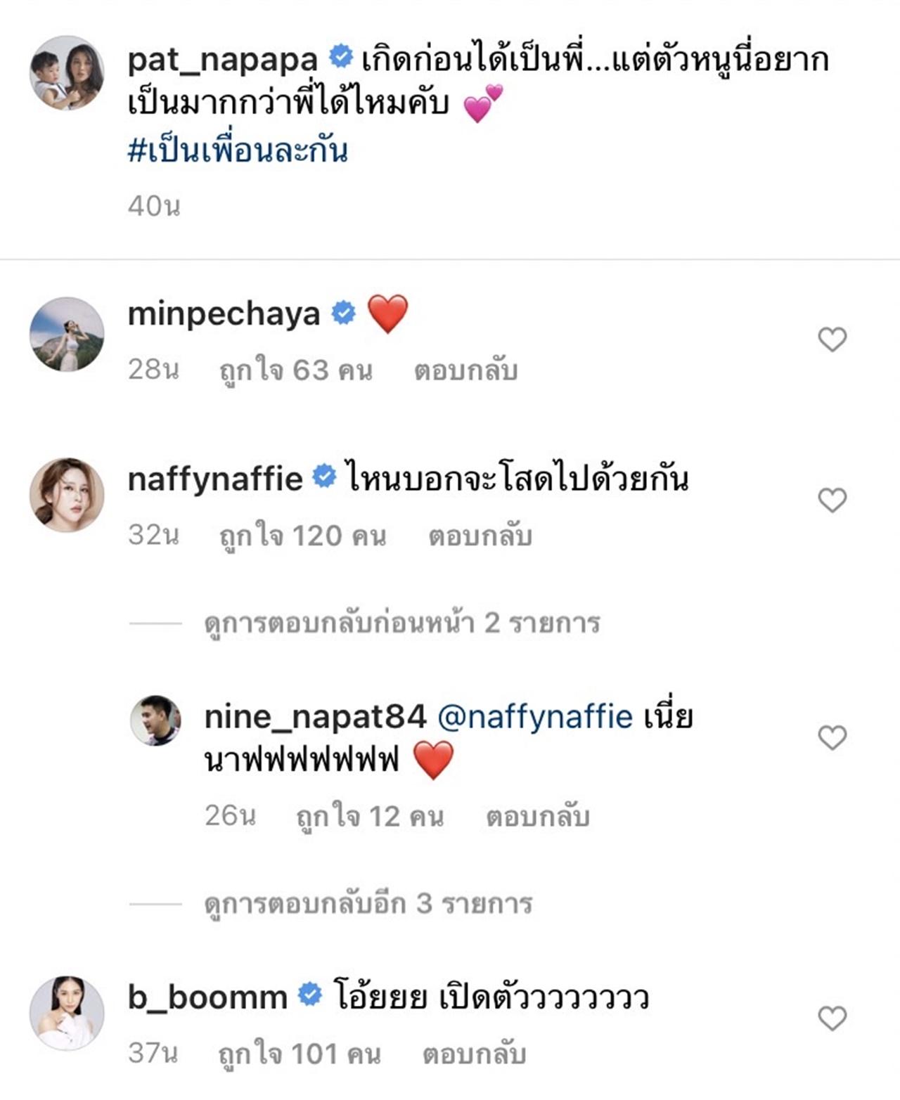 ด้าน นาย ณภัทร ก็ได้ลงภาพเดียวกับ แพท เช่นกัน และเขียนแคปชั่นว่า "เกิดก่อนให้เป็นพี่ เกิดที่หลังเป็นแฟนพี่ละกัน555" ทำเอาเพื่อนๆ และแฟนๆ ที่ติดตามคู่นี้ ต่างเข้ามาแซวในความหวานของคู่นี้กันเป็นจำนวนมาก.