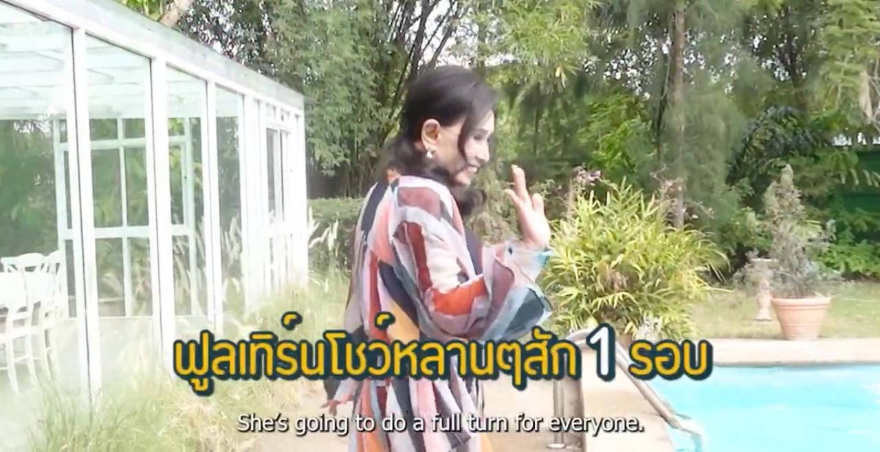 และงานนี้คุณย่าก็ไม่ทำให้ผิดหวัง จัดเต็มในชุดว่ายน้ำสีดำ มาพร้อมเสื้อคลุมลายสดใส พร้อมกับเดินฟูลเทิร์นแบบเบาๆ ให้อีก 1 แมตช์ และยิ้มหวาน เมื่อ ป๊อก ถามแม่ว่า ใส่ชุดว่ายน้ำครั้งสุดท้ายเมื่อไหร่ ย่าปุ๊ก บอกว่า ถ้าใส่ในบ้านก็เมื่อเร็วๆ นี้ แต่ถ้าใส่ข้างนอกบ้านนี่ไม่เคยใส่เลย และยังบอกอีกว่า สมัยสาวๆ ชอบใส่ชุดว่ายน้ำแบบวันพีซ แล้วก็มีทูพีซบ้าง บิกินีก็เคยใส่