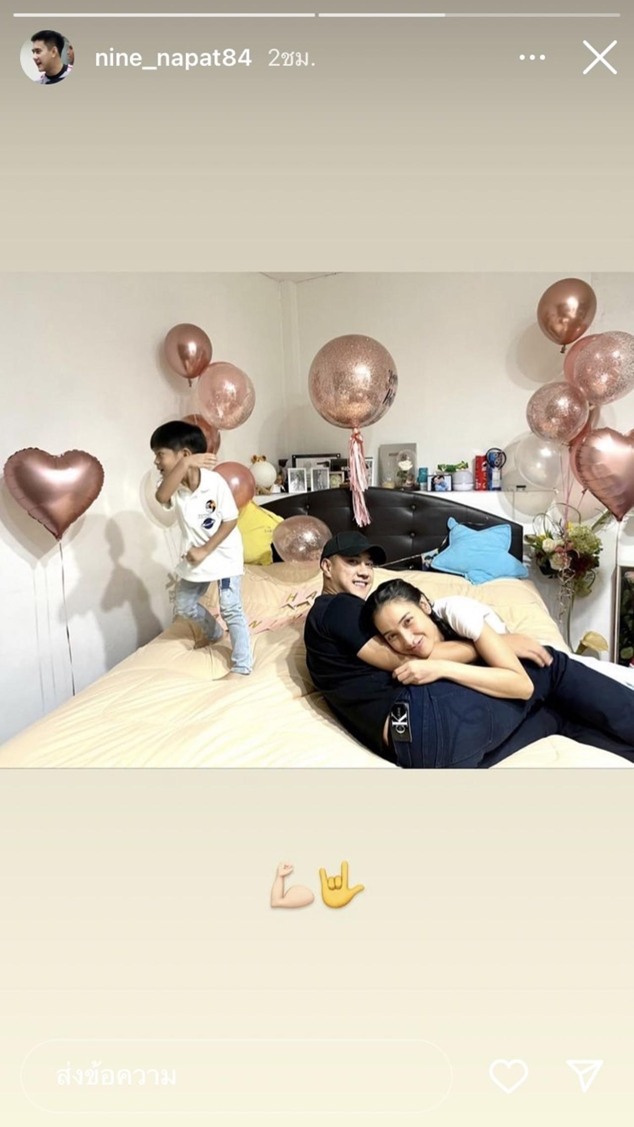 และยังโพสต์โมเมนต์น่ารักๆ ผ่านไอจีสตอรี่ เป็นภาพที่ แพท กับ นาย และน้องเรซซิ่ง อยู่บนเตียง โดย แม่แพทกำลังซบฝ่ายชายสุดหวานเลยทีเดียว ต้องบอกเลยว่า แม้แพทจะไม่ฟอลโลว์ไอจีของฝ่ายชาย แต่นอกจอของคู่นี้เขาหวานกันไม่น้อยเลยนะจ๊ะ.