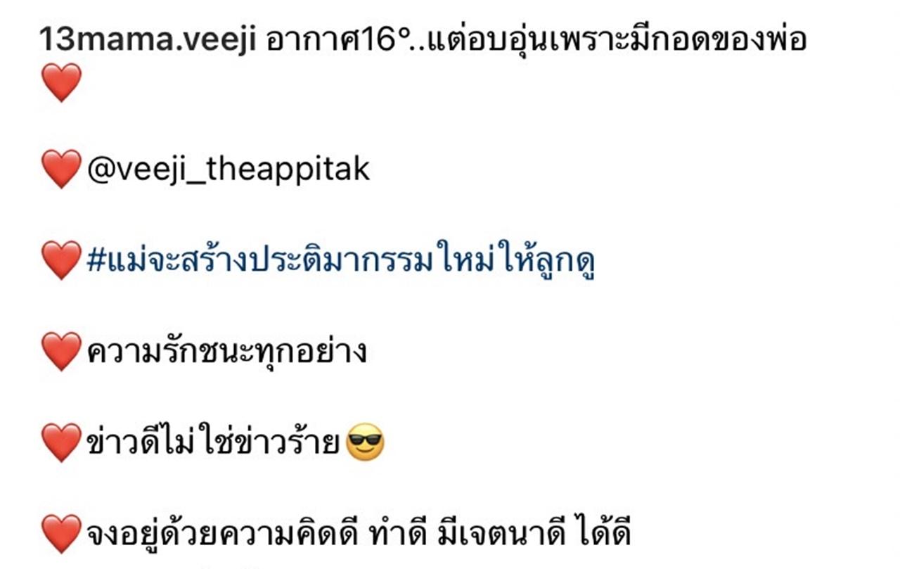 "อากาศ16°..แต่อบอุ่นเพราะมีกอดของพ่อ @veeji_theappitak #แม่จะสร้างประติมากรรมใหม่ให้ลูกดู ความรักชนะทุกอย่าง ข่าวดีไม่ใช่ข่าวร้าย จงอยู่ด้วยความคิดดี ทำดี มีเจตนาดี ได้ดี"