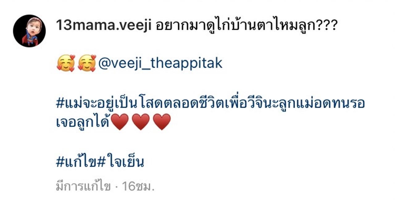"อยากมาดูไก่บ้านตาไหมลูก??? @veeji_theappitak #แม่จะอยู่เป็นโสดตลอดชีวิตเพื่อวีจินะลูกแม่อดทนรอเจอลูกได้ #แก้ไข #ใจเย็น"