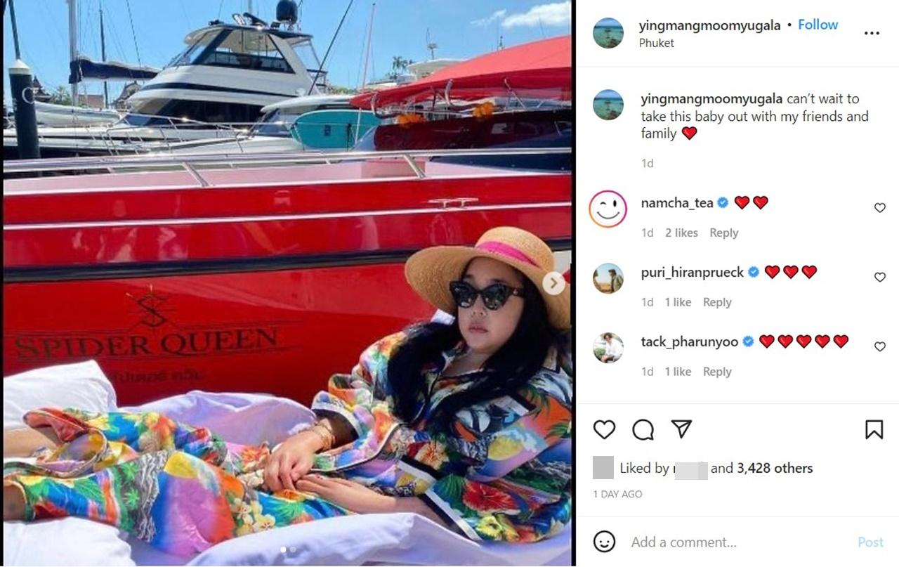 ซึ่งหน้านี้ คุณหญิงแมงมุม ก็ได้โพสต์ภาพตัวเอง พร้อมกับเขียนว่า "can’t wait to take this baby out with my friends and family" ซึ่งคนที่ติดตามก็ได้ส่งกำลังใจให้เป็นจำนวนมาก.