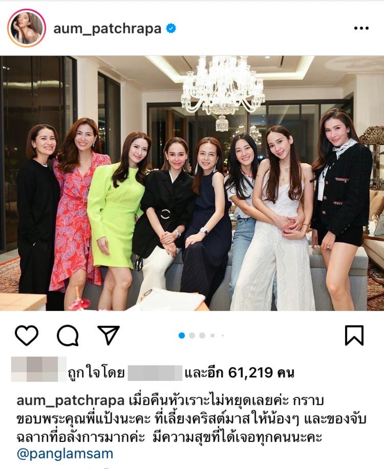 ด้าน นุ่น วรนุช ก็ได้โพสต์ภาพดังกล่าวเช่นกัน พร้อมทั้งเขียนแคปชั่นว่า "Beautiful Night" ส่วน อั้ม พัชราภา ก็ได้โพสต์ภาพ และเขียนว่า "เมื่อคืนหัวเราะไม่หยุดเลยค่ะ กราบขอบพระคุณพี่แป้งนะคะ ที่เลี้ยงคริสต์มาสให้น้องๆ และของจับฉลากที่อลังการมากค่ะ มีความสุขที่ได้เจอทุกคนนะคะ @panglamsam"