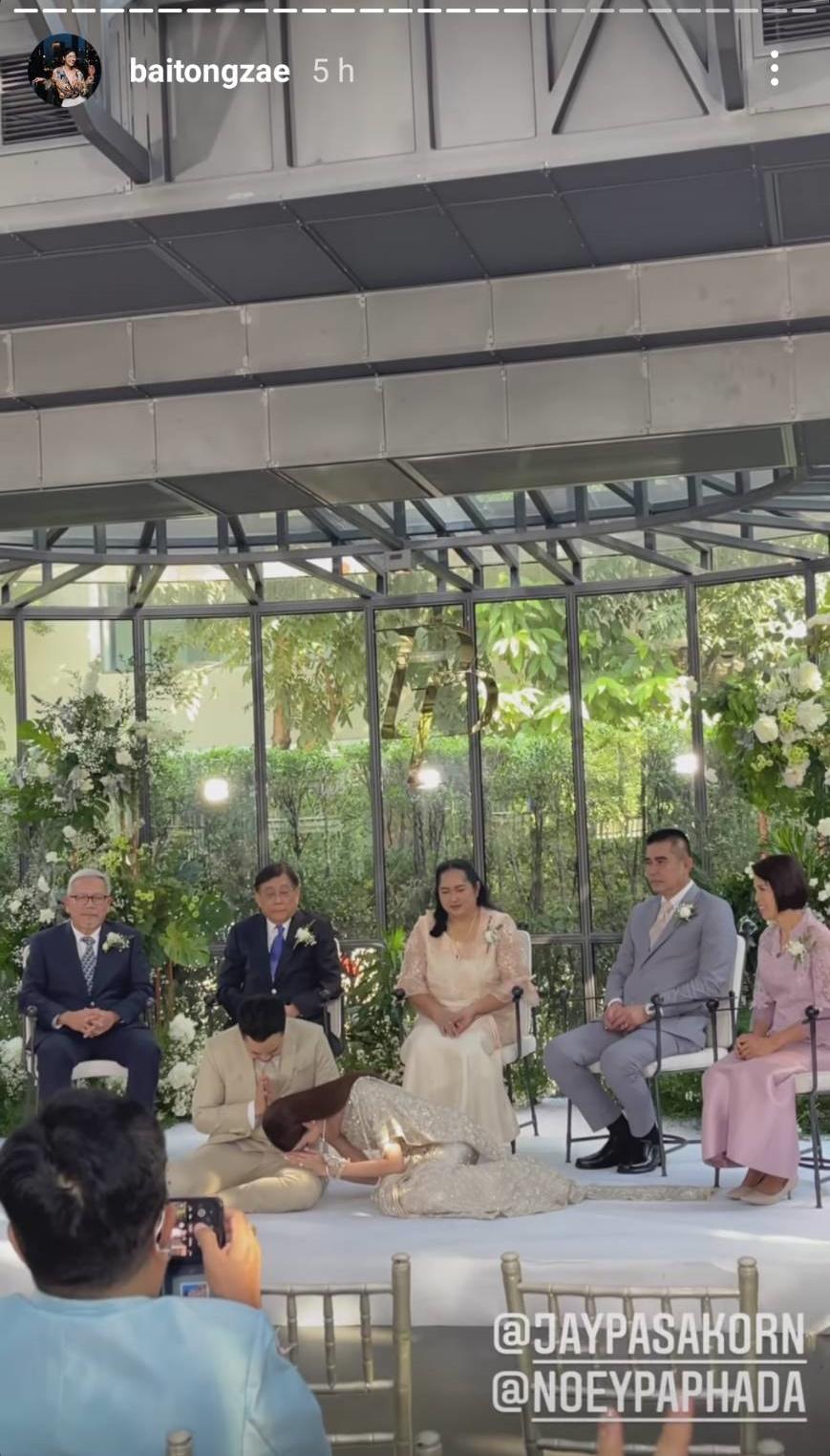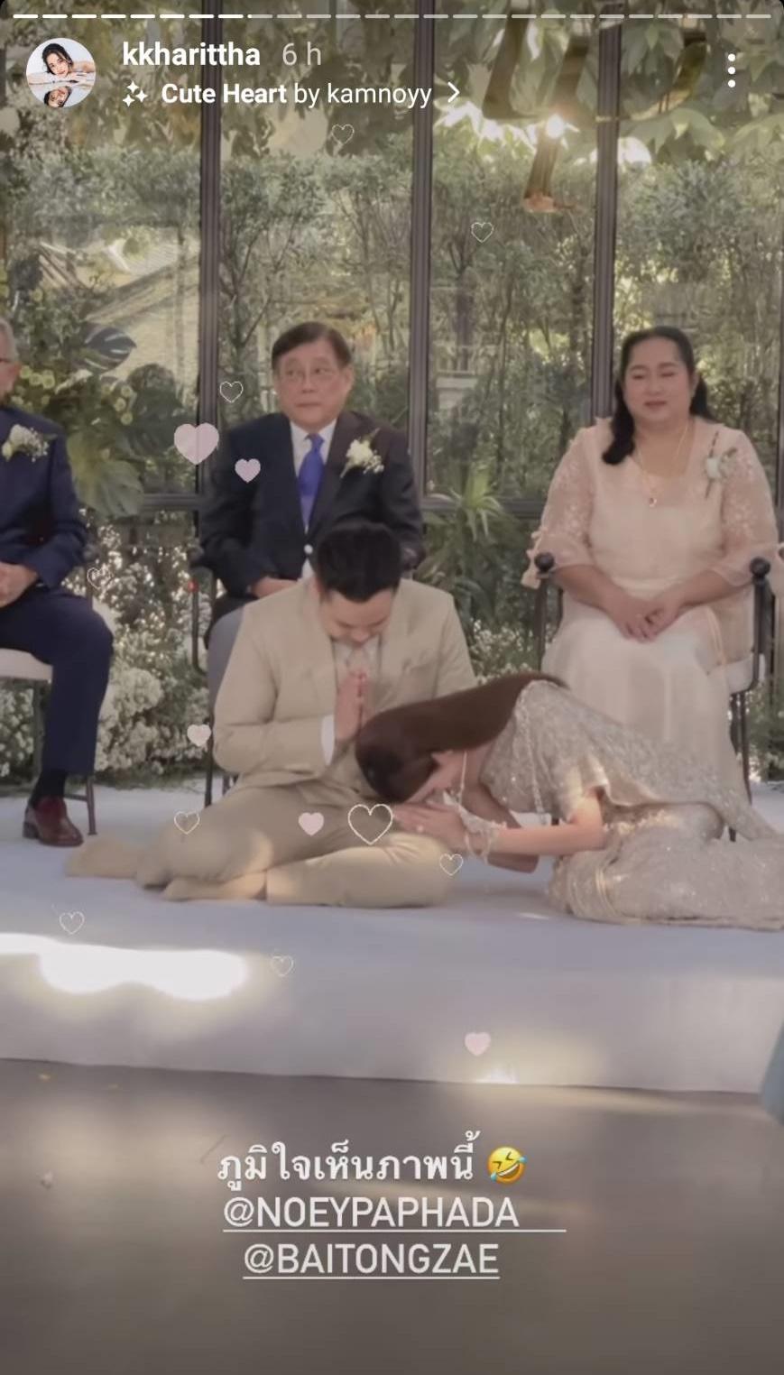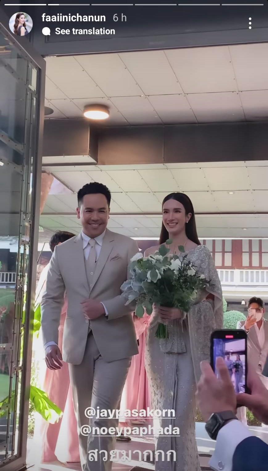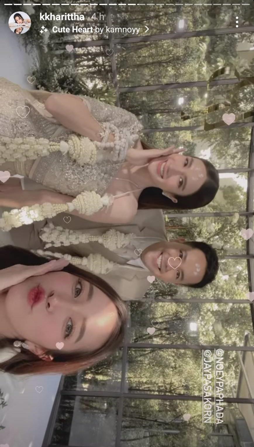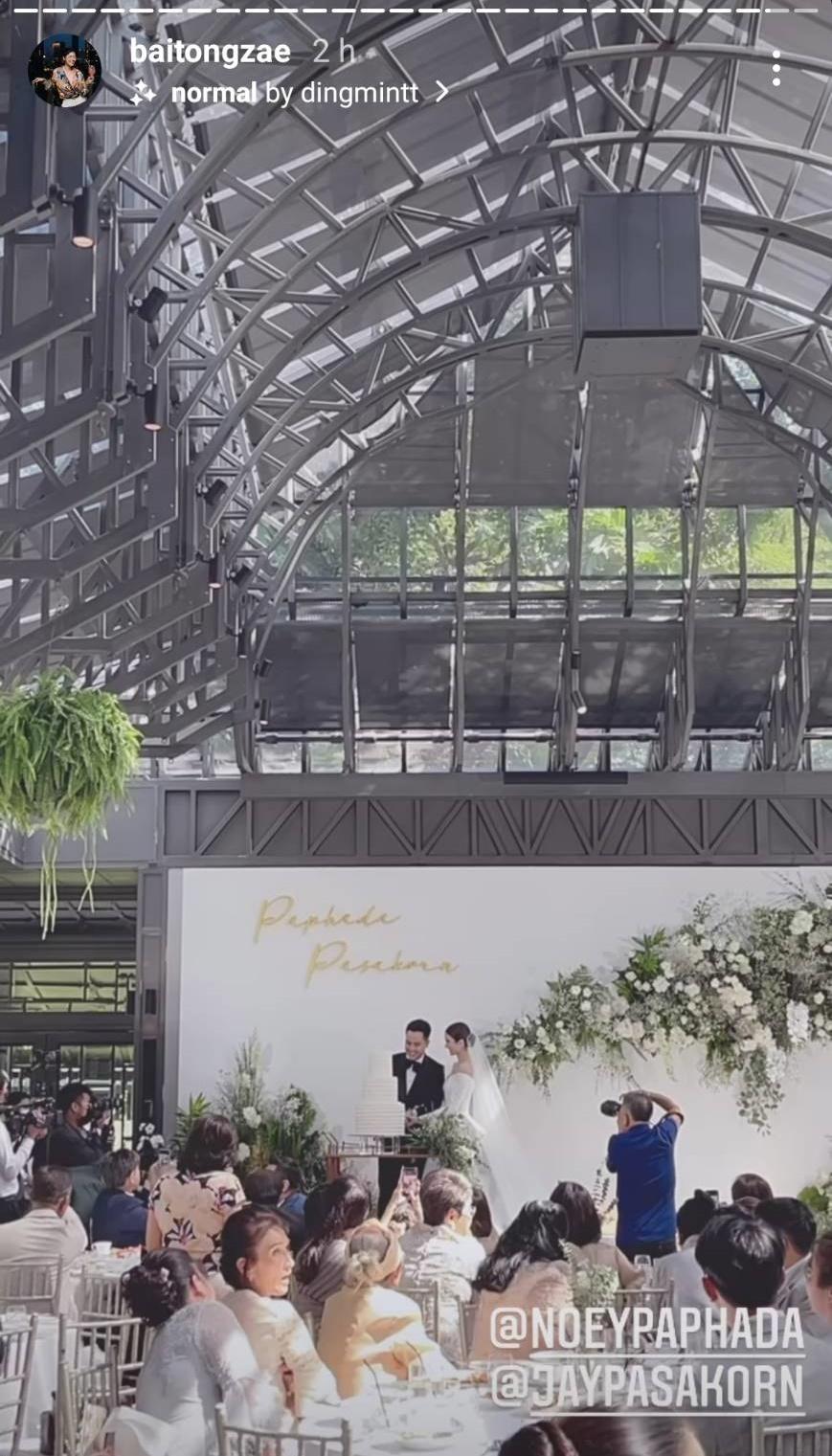 โดยคนบันเทิงที่ไปร่วมยินดี ทั้งนักแสดงสาว ชิงชิง คริษฐา, พาย รินรดา, ฝ้าย นิชานันท์ ฯลฯ ได้โพสต์คลิปบรรยากาศงานแต่งงานของคู่รักหวานลงในไอจีสตอรี่ ซึ่งบรรยากาศเป็นไปอย่างอบอุ่น ด้านใบตอง ผู้จัดการส่วนตัวของเนย ก็ได้โพสต์คลิปบรรยากาศลงในไอจีสตอรี่ด้วยเช่นกัน