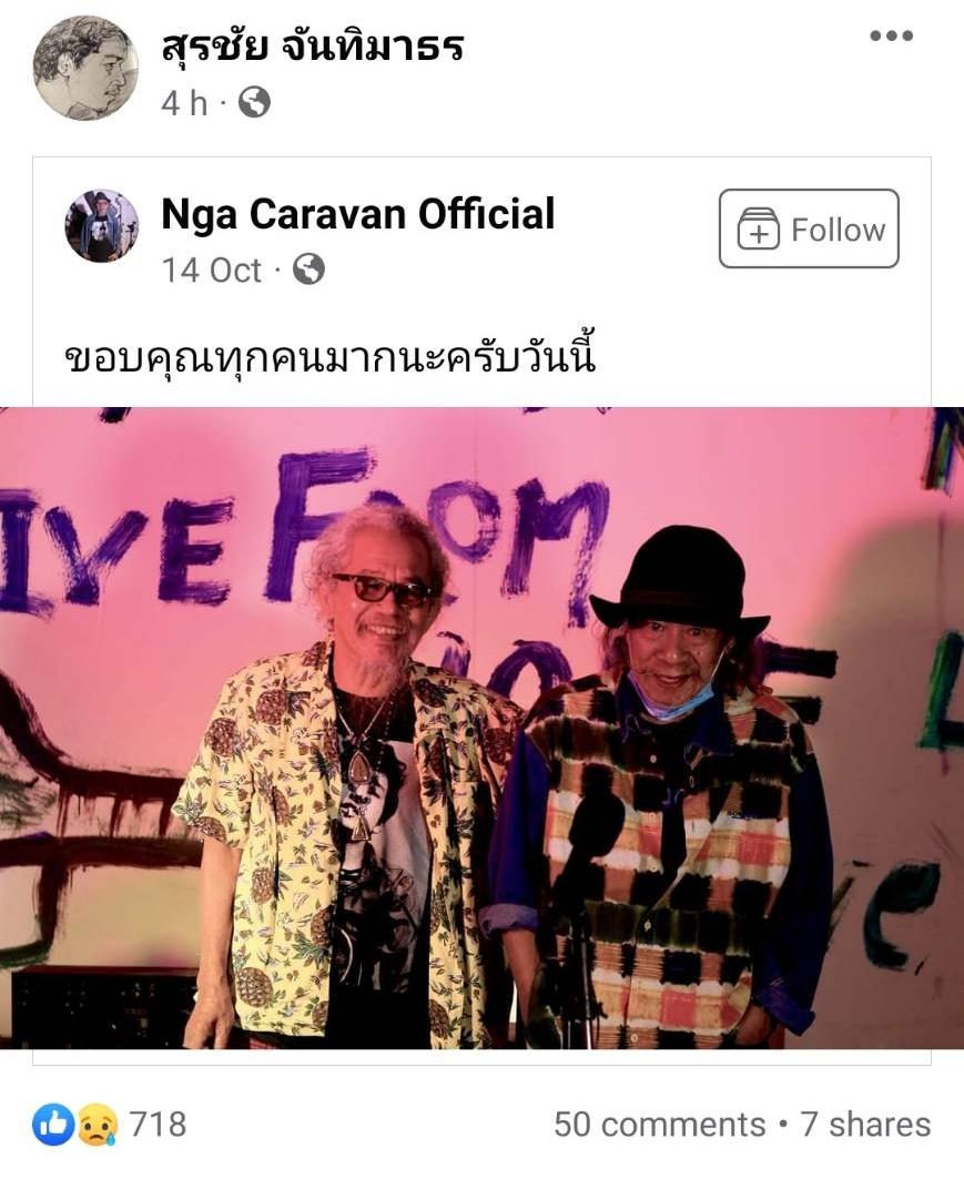 ด้าน หงา คาราวาน ก็ได้แสดงความอาลัยต่อการจากไปของเพื่อนสนิทด้วยการโพสต์ผ่านทางเฟซบุ๊กส่วนตัว สุรชัย จันทิมาธร ไว้ว่า “นักรบ ย่อมโดดเดี่ยว อยู่อย่างโดดเดี่ยว ตายอย่างโดดเดี่ยว แด่เพื่อน วีระศักดิ์ สุนทรศรี” โดยมีแฟนๆ ร่วมแสดงความเสียใจเป็นจำนวนมาก บันเทิงไทยรัฐออนไลน์ขอแสดงความเสียใจด้วยนะคะ.
