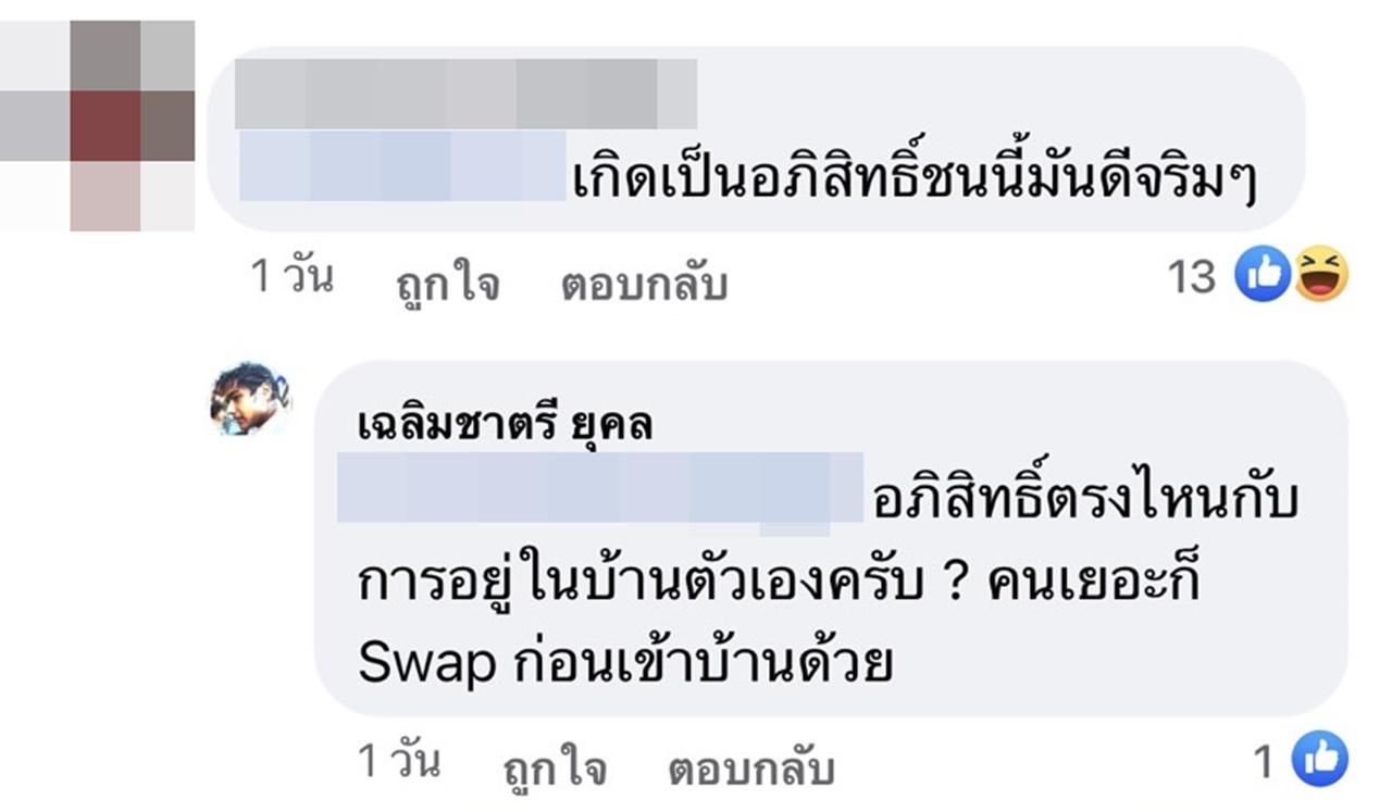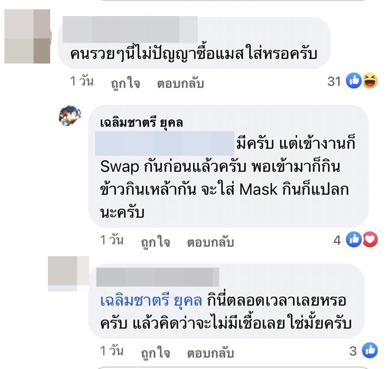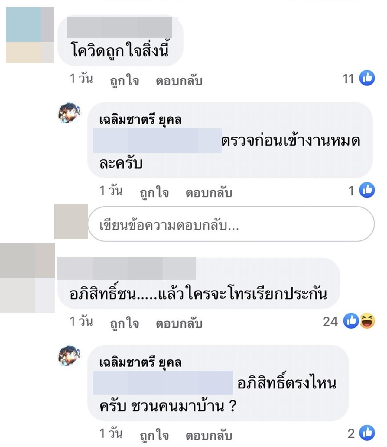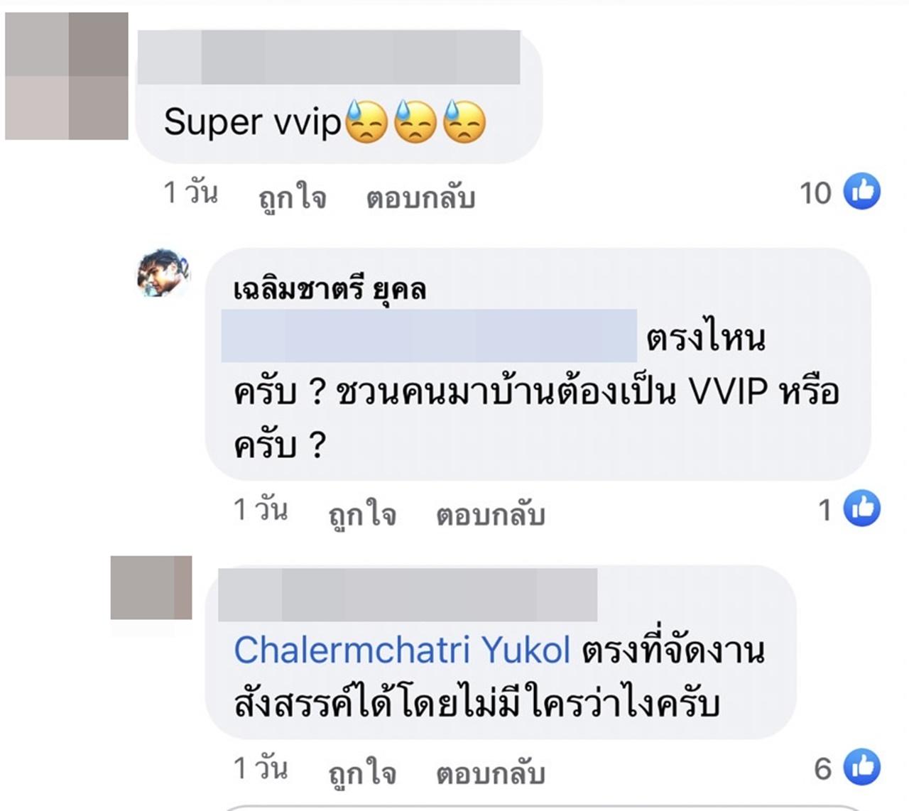 แต่งานนี้ คุณชายอดัมก็ไม่ปล่อยให้ชาวเน็ตสงสัยนาน เพราะได้เข้ามาคอมเมนต์ชี้แจงกลับชาวเน็ตทุกคนที่เข้ามาถามว่า "อภิสิทธิ์ตรงไหนกับการอยู่ในบ้านตัวเองครับ? คนเยอะก็ Swab ก่อนเข้าบ้านด้วย, เป็นงานประจำทุกปี ไม่ได้เสียงดังอะไรมากครับ มาทานข้าวกันครับ".