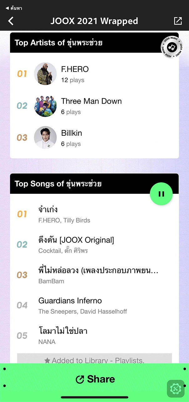 10 อันดับศิลปิน #JOOXOF2021 ที่ครองใจแฟนเพลง JOOX แห่งปี 2021 (ยอดวัดจากจำนวน Playtime)
