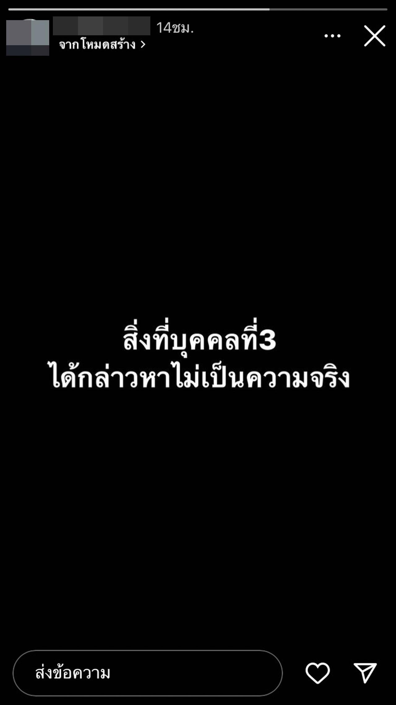 จากนั้นฝ่ายหญิงที่เป็นแฟนสาวของ เสือ ก็ได้ชี้แจงถึงเรื่องดังกล่าวผ่านไอจีสตอรี่ของเธอ โดยบอกว่า "สิ่งที่บุคคลที่ 3 ได้กล่าวหาไม่เป็นความจริง" งานนี้หลายคนที่ติดตามต่างเข้ามาวิจารณ์กันในอินสตาแกรมของ เสก โลโซ กันอย่างมาก.