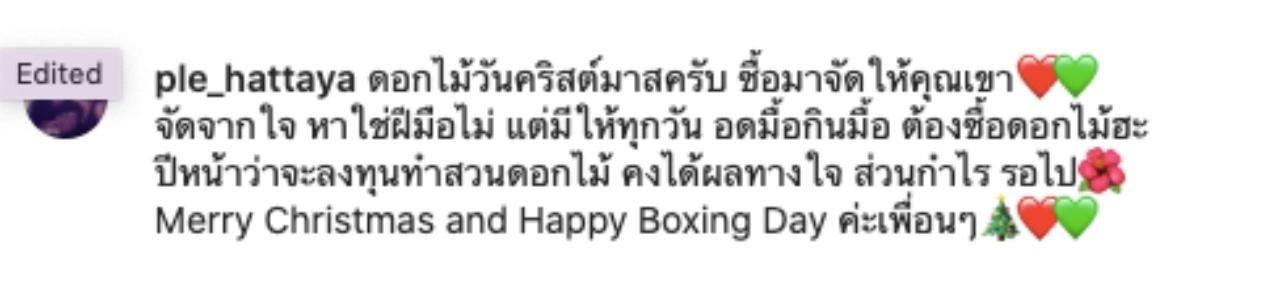 ล่าสุดในวันคริสต์มาสภรรยาสาว เปิ้ล หัทยา ก็จัดดอกไม้แด่ ตั้ว ศรัณยู โดยเจ้าตัวได้โพสต์ข้อความว่า "ดอกไม้วันคริสต์มาสครับ ซื้อมาจัดให้คุณเขา จัดจากใจ หาใช่ฝีมือไม่ แต่มีให้ทุกวัน อดมื้อกินมื้อ ต้องซื้อดอกไม้ฮะ ปีหน้าว่าจะลงทุนทำสวนดอกไม้ คงได้ผลทางใจ ส่วนกำไร รอไป"