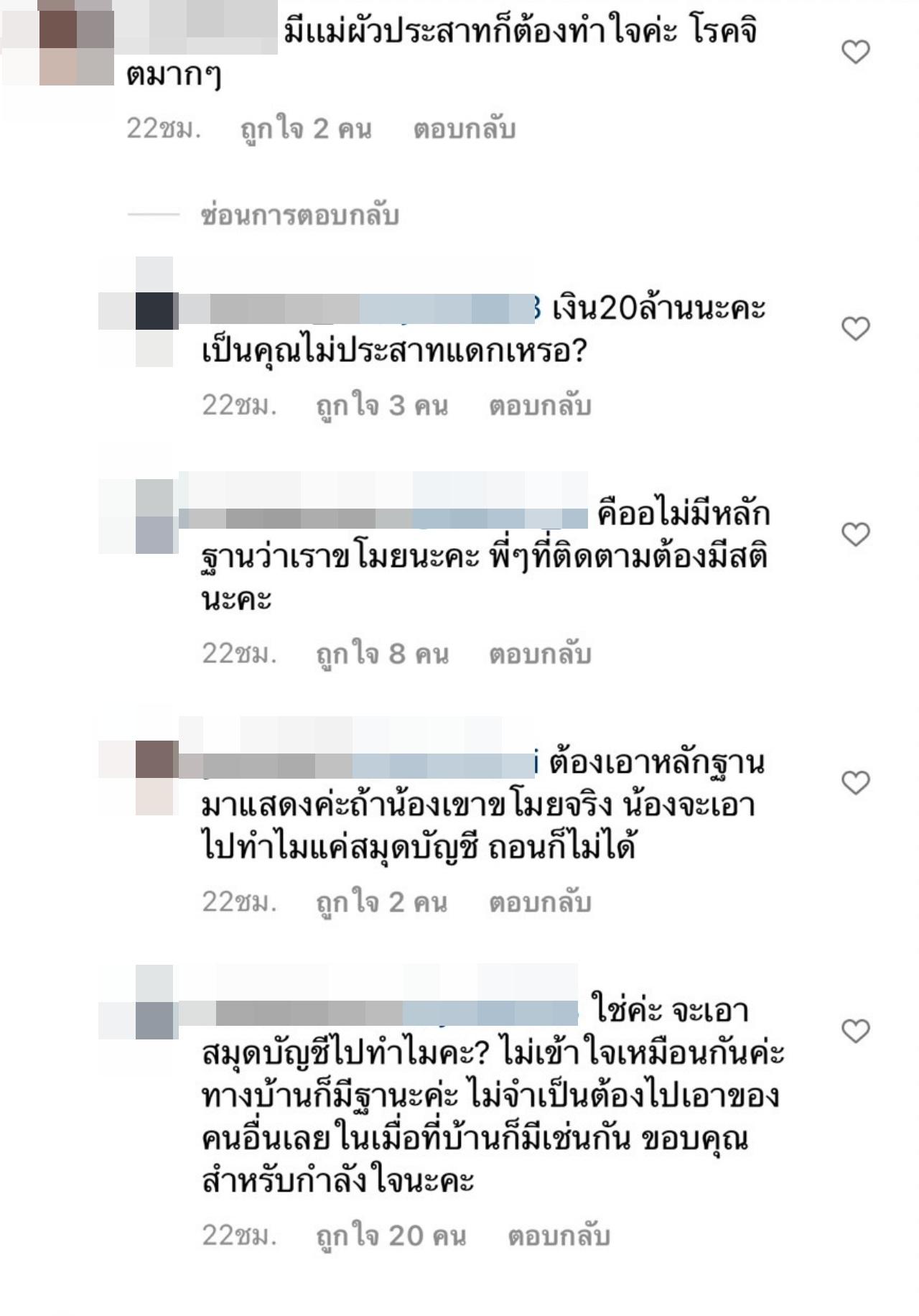 แต่งานนี้ชาวเน็ตยังถามต่อถึงเรื่องสมุดบัญชีธนาคารว่า “ต้องเอาหลักฐานมาแสดงค่ะ ถ้าน้องเขาขโมยจริง น้องจะเอาไปทำไมแค่สมุดบัญชี ถอนก็ไม่ได้” งานนี้ฝ่ายหญิงก็ได้ตอบคอมเมนต์นี้ว่า “ใช่ค่ะ จะเอาสมุดบัญชีไปทำไมคะ? ไม่เข้าใจเหมือนกันค่ะ ทางบ้านก็มีฐานะค่ะ ไม่จำเป็นต้องไปเอาของคนอื่นเลยในเมื่อที่บ้านก็มีเช่นกัน ขอบคุณสำหรับกำลังใจนะคะ”