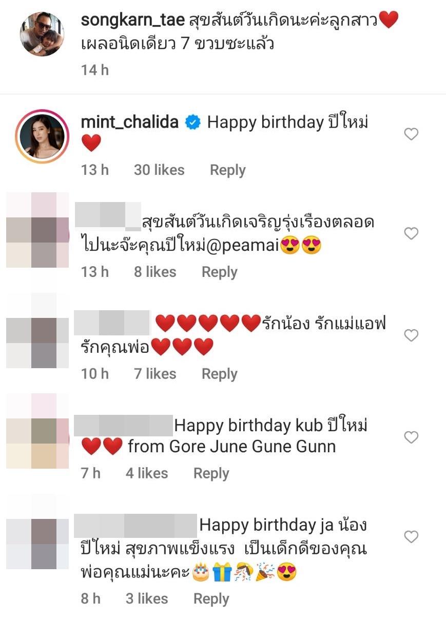 และเมื่อถึงวันคล้ายวันเกิดอายุครบ 7 ขวบ คุณพ่ออย่างสงกรานต์ก็ไม่ลืมที่จะอวยพรลูกสาวผ่านทางไอจีส่วนตัว โดยโพสต์ภาพคู่กันพร้อมทั้งเขียนแคปชั่น “สุขสันต์วันเกิดนะค่ะลูกสาว เผลอนิดเดียว 7 ขวบซะแล้ว” ในขณะที่นางเอกสาว มิ้นต์ ชาลิดา วิจิตรวงศ์ทอง ก็เข้ามาคอมเมนต์อวยพรวันเกิดหลานด้วยเช่นกัน อีกทั้งยังมีแฟนๆ เข้ามาคอมเมนต์อวยพรวันเกิดน้องปีใหม่นับร้อยข้อความเลยทีเดียว.