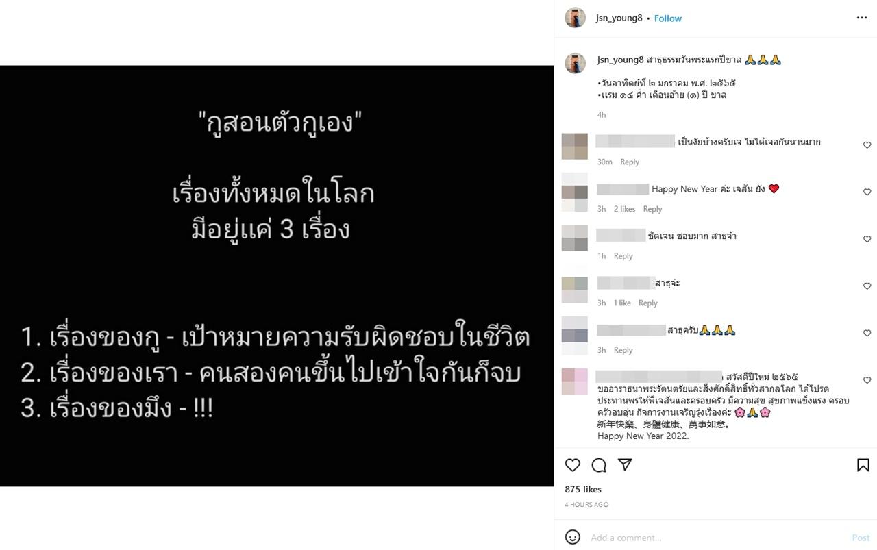 ซึ่งภาพในอินสตาแกรมของ เจสัน ยัง นั้นเหลือเพียง 3 ภาพเท่านั้น โดยเป็นภาพของตัวเอง และภาพข้อความที่ระบุไว้ว่า