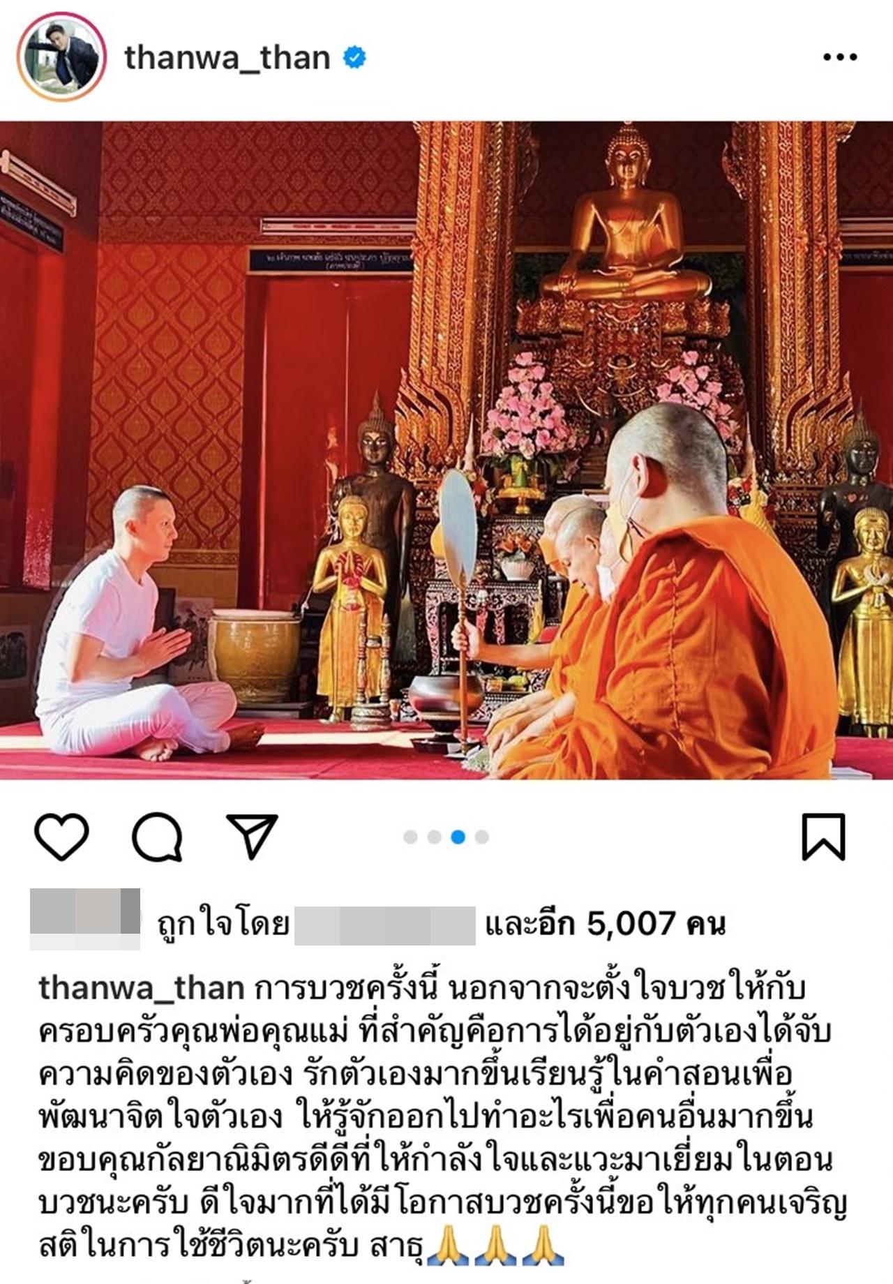 โดยพระเอกหนุ่มได้โพสต์ภาพขณะที่ทำพิธีลาสิกขา และเขียนข้อความว่า