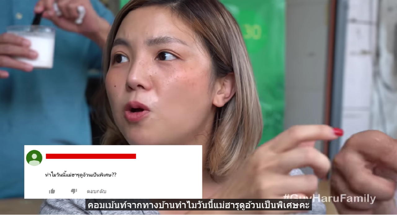เจอคอมเมนต์สุดอึ้ง แต่ ฮารุ สุประกอบ ภรรยาสาวของ กาย รัชชานนท์ ก็สามารถตอบกลับได้แบบจุกๆ เลยทีเดียว โดยในคลิปทางช่องยูทูบ Guy Haru Family เป็นคลิปที่ ฮารุ และ กาย พาไปกินอาหารอร่อยระดับตำนานข้างทาง