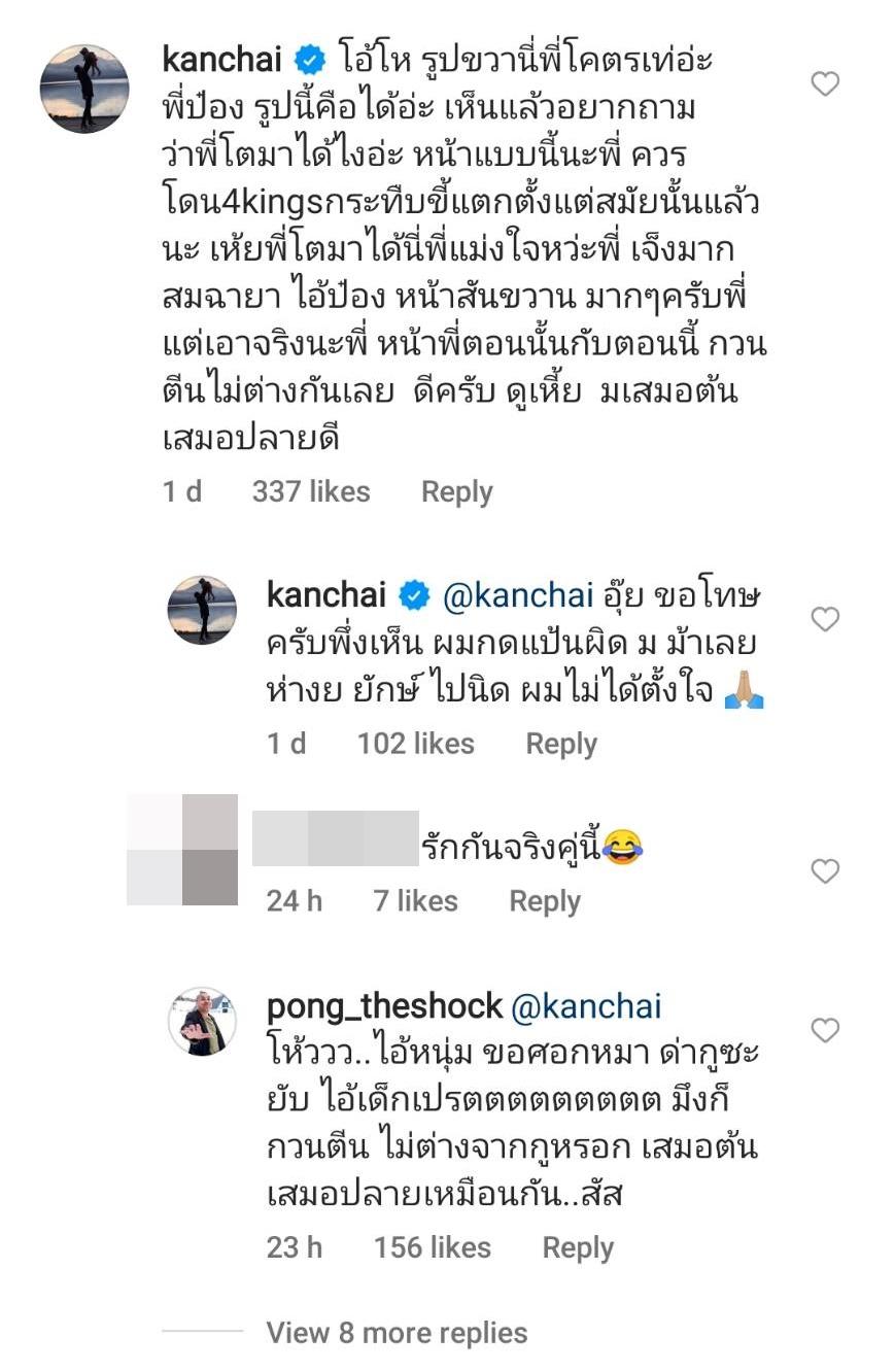 และงานนี้คนในรูปอย่างหนุ่ม กรรชัย ก็ไม่ทำให้แฟนๆ ผิดหวังอีกเช่นเคย ตอบกลับด้วยข้อความสุดพีกไว้ว่า “โอ้โห รูปขวานี่พี่โคตรเท่อ่ะพี่ป๋อง รูปนี้คือได้อ่ะ เห็นแล้วอยากถามว่าพี่โตมาได้ไงอ่ะ หน้าแบบนี้นะพี่ ควรโดน 4kings กระทืบขี้แตกตั้งแต่สมัยนั้นแล้วนะ เห้ยพี่โตมาได้นี่พี่แม่-ใจหว่ะพี่ เจ็งมาก สมฉายา ไอ้ป๋อง หน้าสันขวาน มากๆ ครับพี่ แต่เอาจริงนะพี่ หน้าพี่ตอนนั้นกับตอนนี้ กวนตี-ไม่ต่างกันเลย ดีครับ ดูเหี้ย มเสมอต้นเสมอปลายดี”