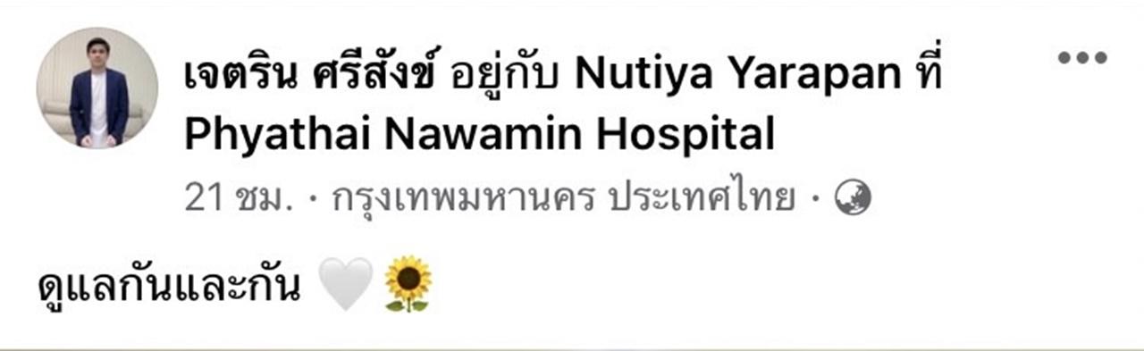ตอนนี้พวกผมก็ได้เข้ารักษาตัวที่ รพ. พญาไท นวมินทร์ แล้วนะครับ พี่ๆ พยาบาลประสานหาเตียงให้เร็วมาก ขอบคุณมากๆเลยครับ ผมได้อยู่ห้องเดียวกับน้องเบียร์ครับ ดีหน่อยครับ ไม่เหงา #วัยรุ่นโอมิครอน".