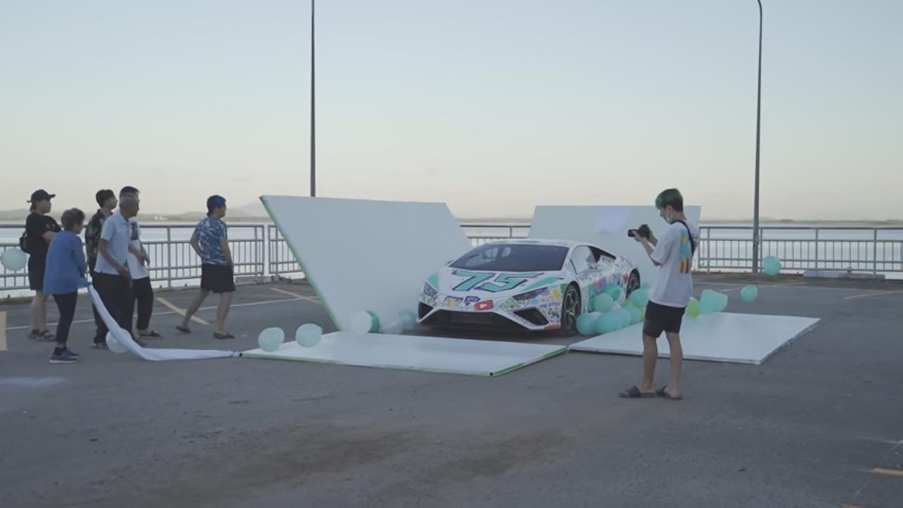 และเมื่อสไปร์ทไปถึงศูนย์ขายรถ สไปร์ทเลยเลือกซื้อรถลัมโบร์กินีสีขาวให้คุณตา มูลค่า 24.8 ล้านบาท อีกทั้งยังแปลงโฉมรถหรูด้วยการแร็ปสติกเกอร์สีขาว และให้เพื่อนๆ ช่วยกันเพนต์รถเป็นลวดลายต่างๆ ซึ่งมีความหมายความทรงจำดีๆ มากมายเกี่ยวกับสไปร์ท รวมไปถึงเลข 75 ซึ่งหมายถึงเลขอายุคุณตาที่อายุ 75 ปี