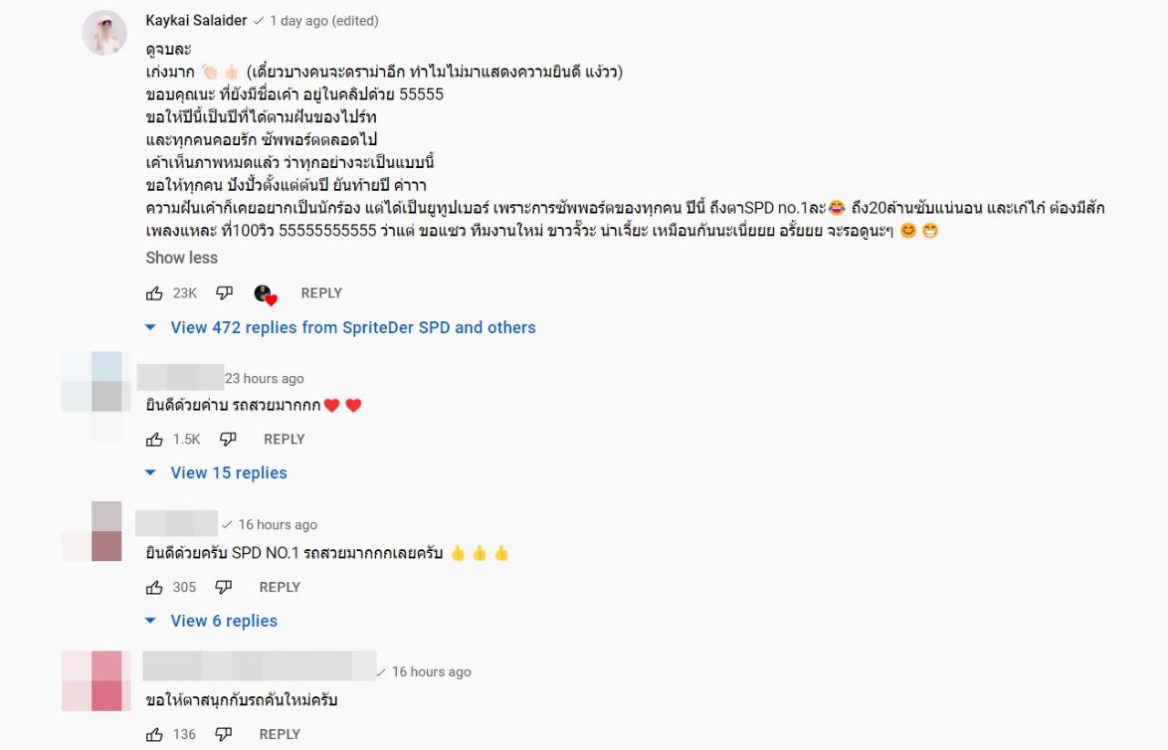 ความฝันเค้าก็เคยอยากเป็นนักร้อง แต่ได้เป็นยูทูปเบอร์ เพราะการซัพพอร์ตของทุกคน ปีนี้ถึงตา SPD no.1 ละ ถึง 20 ล้านซับแน่นอน และเก๋ไก๋ ต้องมีสักเพลงแหละ ที่ 100 วิว 55555555555 ว่าแต่ขอแซวทีมงานใหม่ ขาวจั๊วะน่าเจี้ยะเหมือนกันนะเนี่ยยย อรั้ยยย จะรอดูนะๆ".