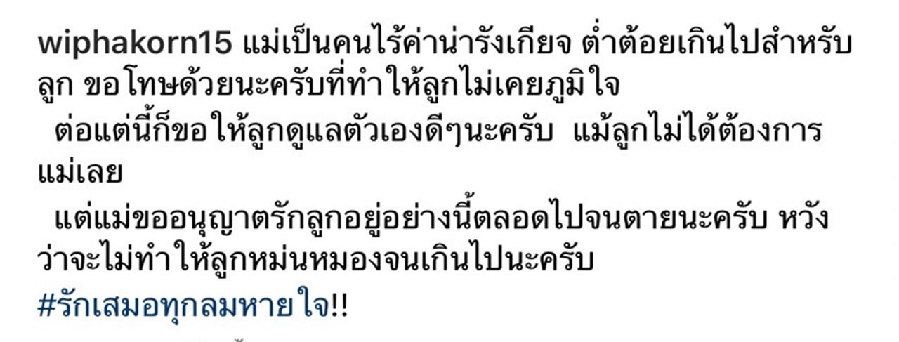 "แม่เป็นคนไร้ค่าน่ารังเกียจ ต่ำต้อยเกินไปสำหรับลูก ขอโทษด้วยนะครับที่ทำให้ลูกไม่เคยภูมิใจ ต่อแต่นี้ก็ขอให้ลูกดูแลตัวเองดีๆ นะครับ แม้ลูกไม่ได้ต้องการแม่เลย