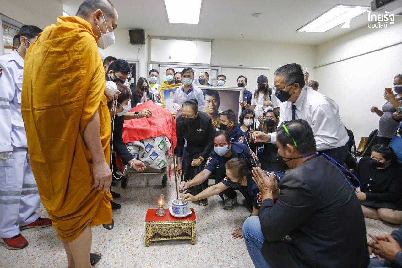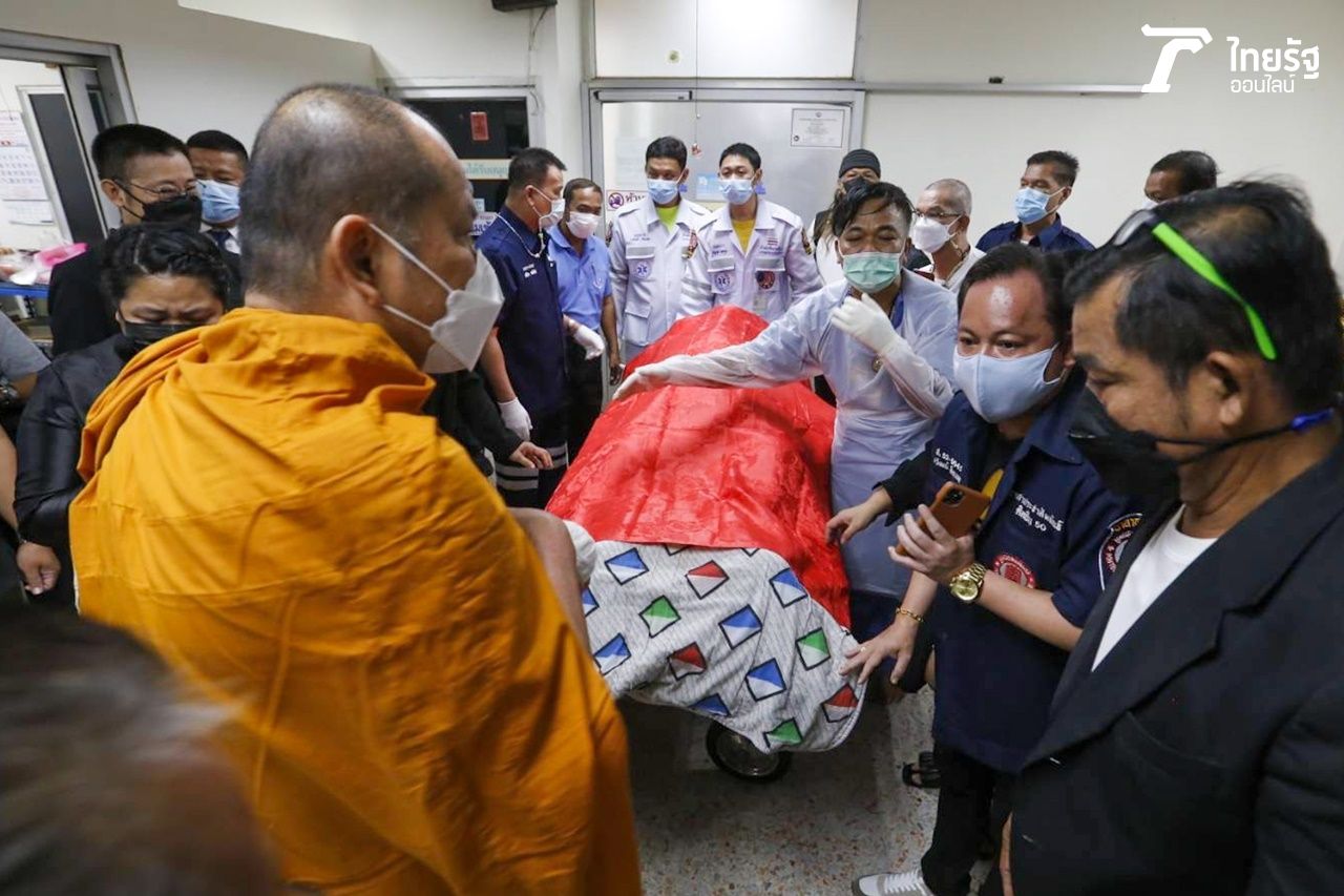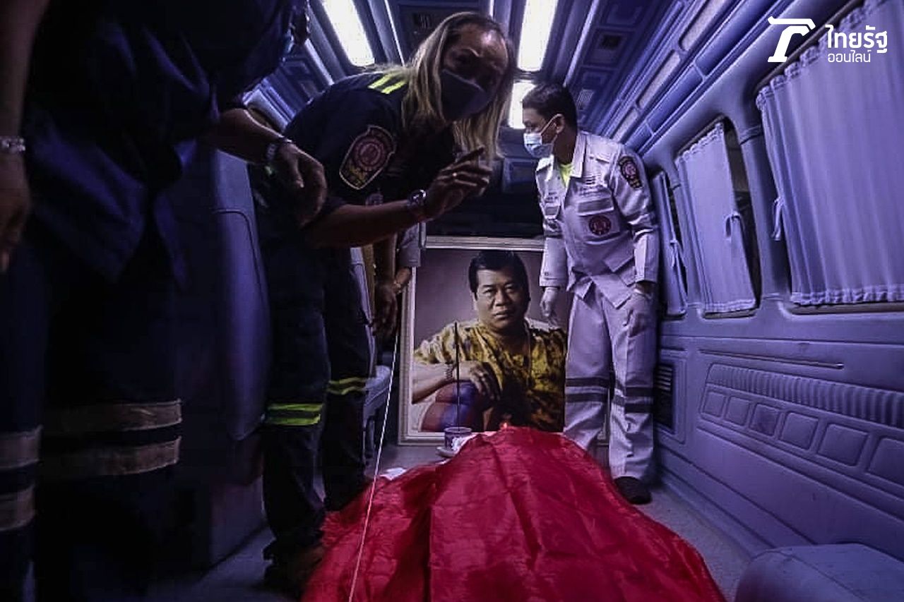 โดยในเช้าวันนี้ 14 ม.ค. 2565 ในเวลา 09.00 น. ทางครอบครัวได้ไปรับร่างอันไร้ลมหายใจของ ไวพจน์ เพชรสุพรรณ ที่โรงพยาบาลตากสิน จากนั้นได้เคลื่อนศพไปตั้งบำเพ็ญกุศลต่อที่จังหวัดสุพรรณบุรี ซึ่งเป็นบ้านเกิดของพ่อไวพจน์ โดยทางครอบครัวได้นำชุดเสื้อแขนยาวและกางเกงขายาวสีขาว มาสวมใส่ให้แก่พ่อไวพจน์ ก่อนนำผ้าแดงคลุมศพ