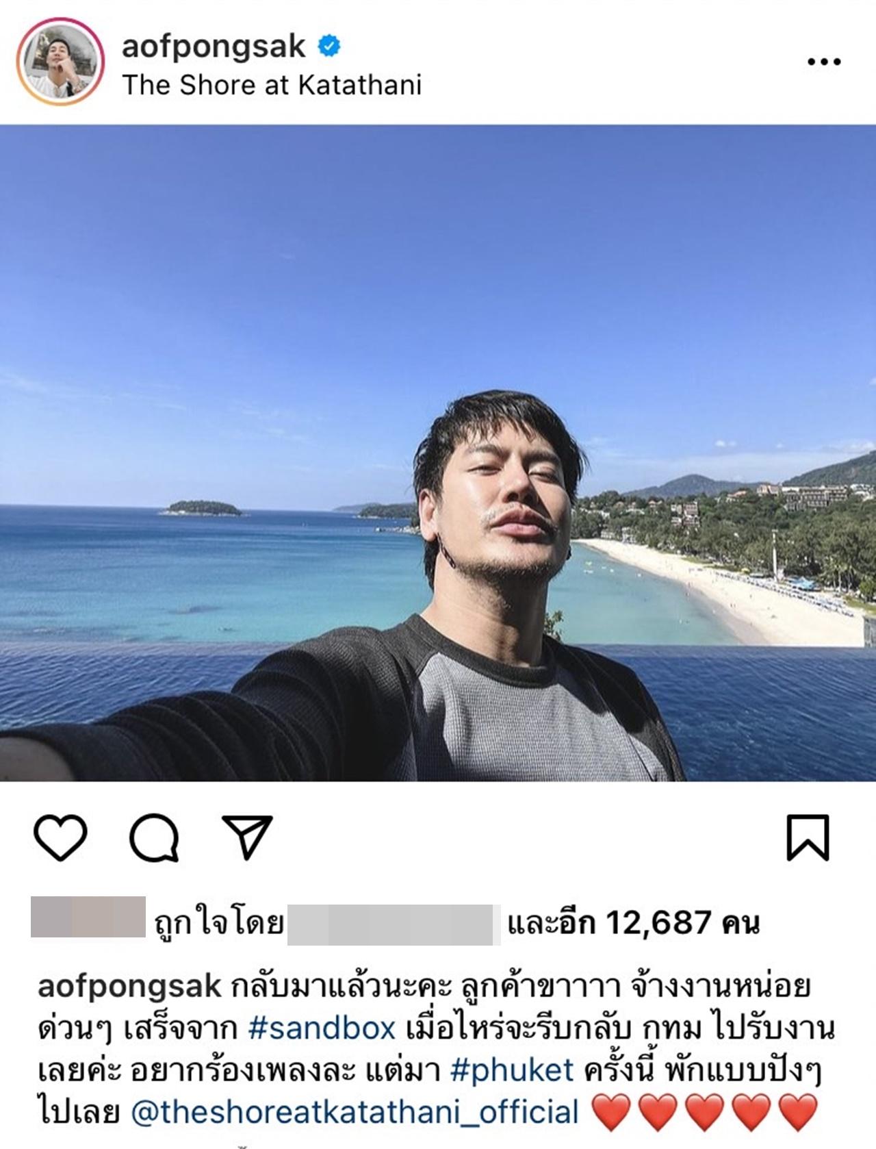 โดย อ๊อฟ ได้โพสต์ภาพตัวเอง พร้อมเขียนแคปชั่นว่า "กลับมาแล้วนะคะ ลูกค้าขาาาา จ้างงานหน่อย ด่วนๆ เสร็จจาก #sandbox เมื่อไหร่จะรีบกลับ กทม ไปรับงานเลยค่ะ อยากร้องเพลงละ แต่มา #phuket ครั้งนี้ พักแบบปังๆไปเลย"