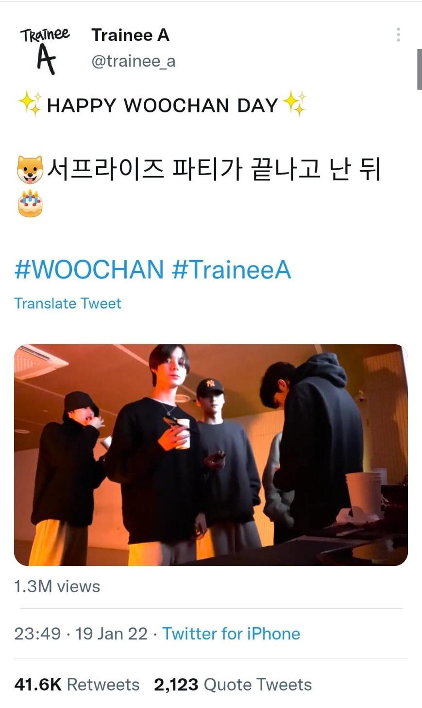 และงานนี้ไม่ต้องสงสัยกันอีกต่อไป เมื่ออูชานโพสต์ภาพเมมเบอร์ทั้ง 7 คนผ่านทางอินสตาแกรม @_trainee_a พร้อมทั้งเขียนข้อความขอบคุณเมมเบอร์และแฟนๆ เป็นภาษาเกาหลี ซึ่งแปลได้ว่า “ขอบคุณทุกคนที่อวยพรวันเกิด รู้สึกได้รับความรักมากมายในวันเกิดครบรอบ 18 ปีของผม ผมจะไม่ลืมวันนี้เลย ผมลืมไปแล้วด้วยซ้ำว่าวันนี้เป็นวันเกิดของผม แต่ Trainee A ได้เตรียมเซอร์ไพรส์ปาร์ตี้ไว้ให้ด้วย ทั้งพี่ซังวอน พี่ลีโอ เจมส์ เจเจ จีฮุน และในที่สุดก็ได้เปิดเผย พี่โยชิ (ยอร์ช) ขอบคุณทุกคนมากๆ ผมจะอ่านทุกข้อความที่ทุกคนส่งมานะครับ ผมจะพยายามตอบแทนทุกความรักอย่างเต็มที่ ขอบคุณครับ”