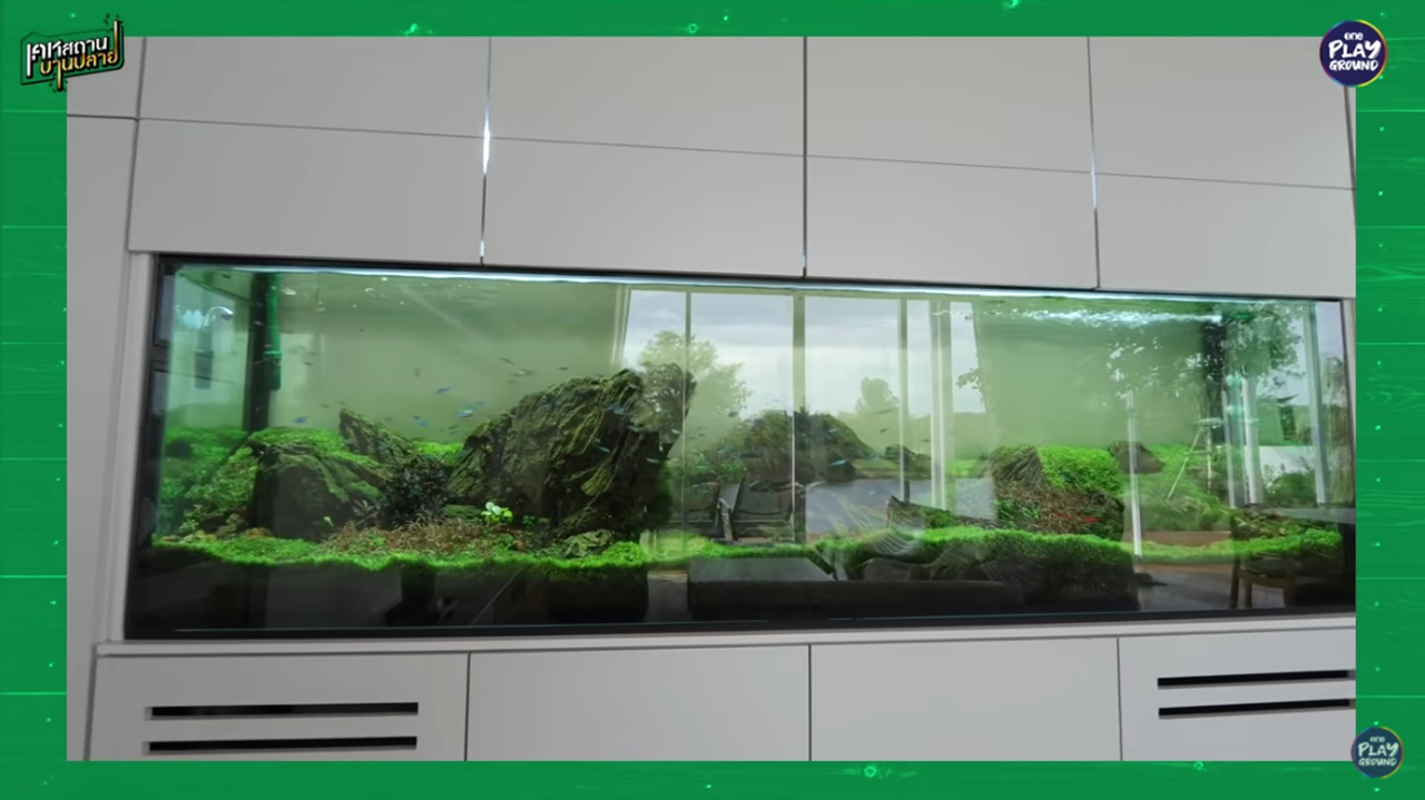 ส่วนตู้ปลาตู้ใหญ่ในบ้านนั้น เป็นสิ่งที่อยากได้มานานแล้ว เพราะเป็นคนชอบเลี้ยงปลาตั้งแต่เด็ก และบ้านหลังเก่าก็จะเลี้ยงปลาไว้ในห้องน้ำ พอมาบ้านหลังใหม่ของตัวเองเลยอยากทำขึ้นมา ซึ่งตู้ปลาตู้นี้ราคา 1 แสนกว่าบาทเลยทีเดียว และเป็นสิ่งที่ลงทุนมากที่สุดเพราะเป็นเหมือนภาพวาดของบ้าน