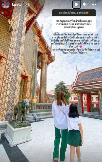 กับคำถามว่า “ปกติคุณเธอเครียดง่ายไหมคะ และเวลาเครียด กังวล มีวิธีจัดการยังไงบ้างค้า//ขอบคุณค่ะ” งานนี้เธอตอบกลับไปว่า “เมื่อก่อนสมัยเด็กๆ ก็เครียดง่ายมากๆ ค่า แต่เวลาก็สอนให้เราโตขึ้น ปล่อยวางอะไรมากขึ้น อะไรที่ช่างมันได้ก็พยายามช่างมันค่า เครียดเองเหนื่อยเอง ถ้ามองข้ามอะไรได้ก็พยายามมองข้ามไปค่า เวลาเครียดเธอชอบไปเที่ยว ไปวัดไปทะเลอยู่กับลูกก็จะลืมๆ มันไปค่า”