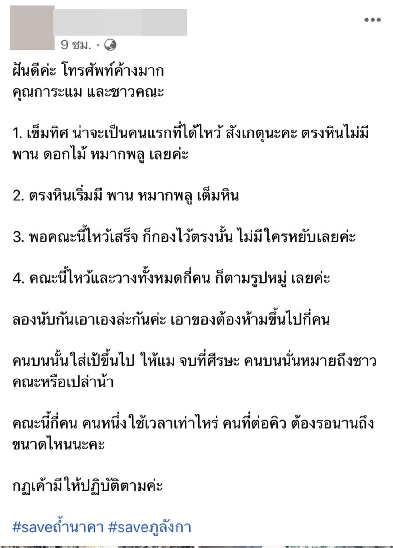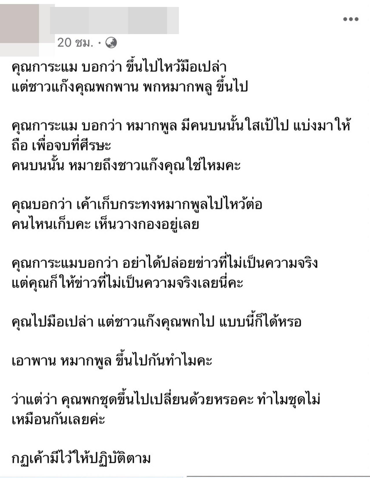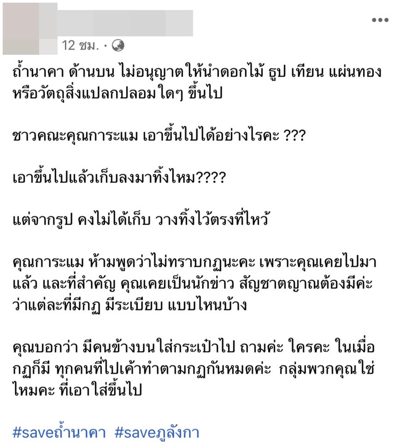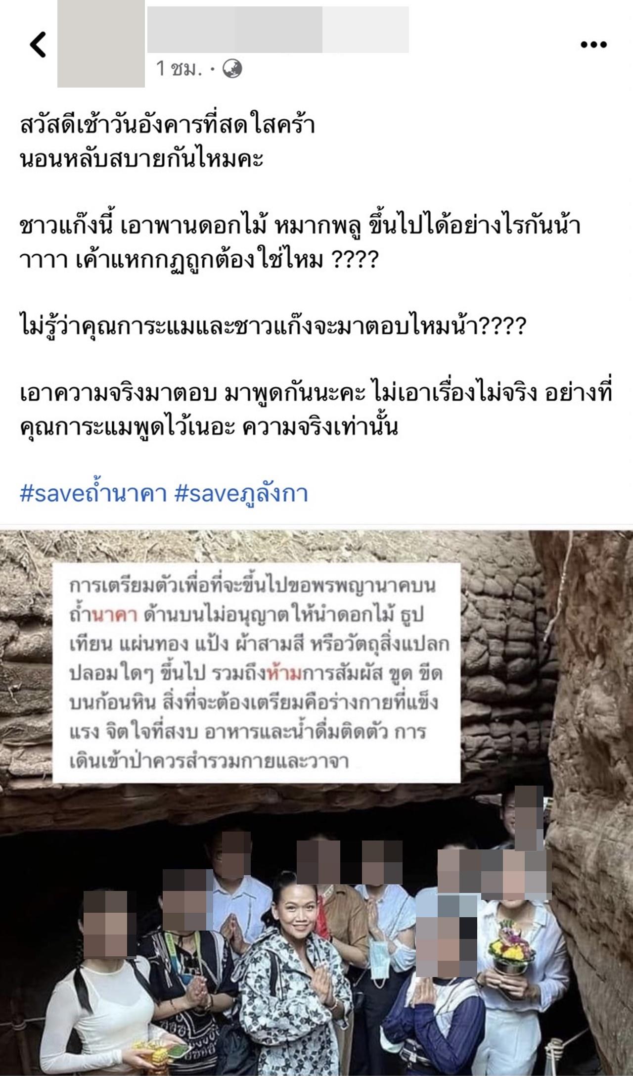 และชาวเน็ตรายเดิม ก็ได้ออกมาโพสต์ถึง กาละแมร์ และชาวแก๊งต่ออีกว่า "คุณกาละแมบอกว่าขึ้นไปไหว้มือเปล่า แต่ชาวแก๊งคุณพกพาน พกหมากพลูขึ้นไป