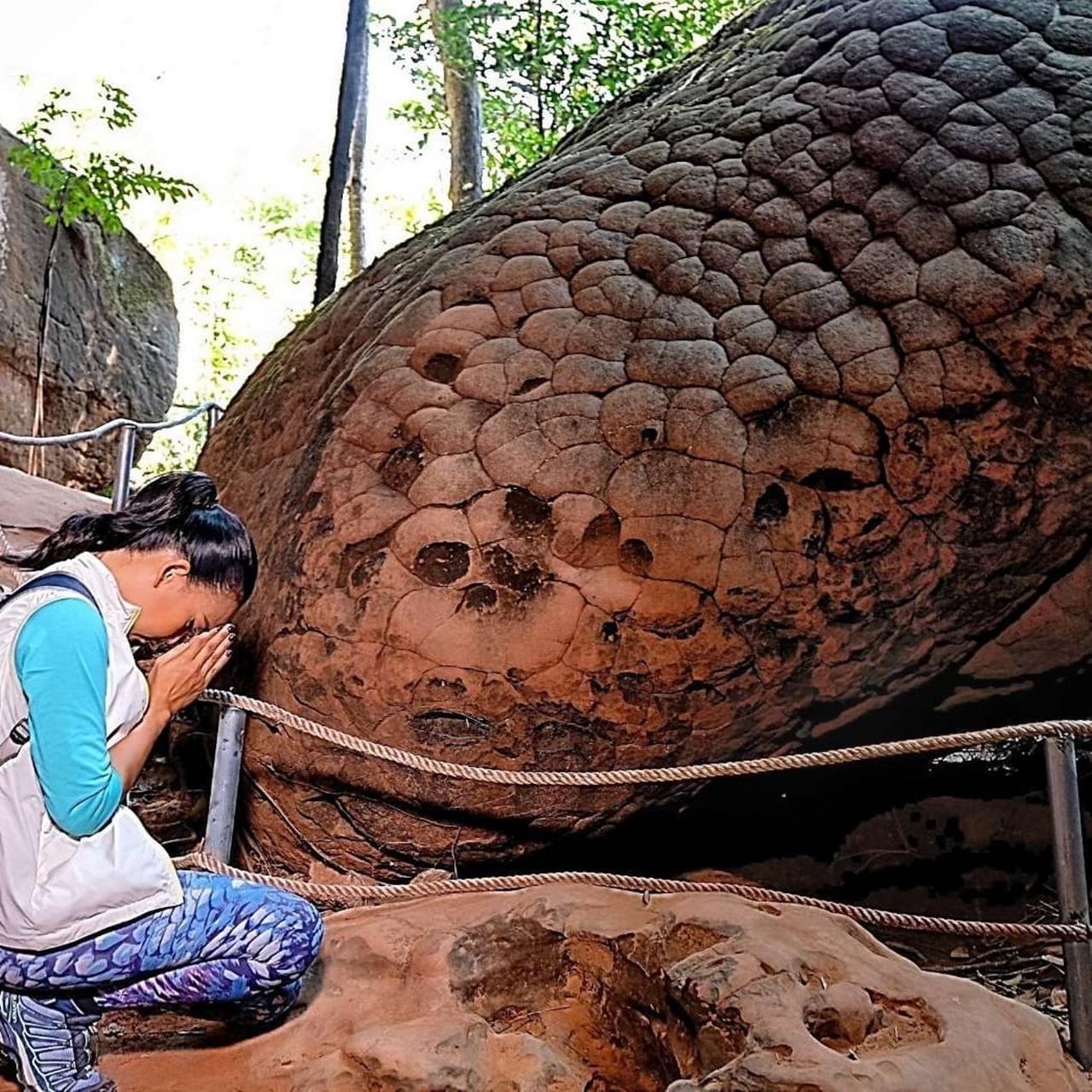 คุณกาละแมไหว้ของวางยังไม่เต็มหิน พอคนในคณะคุณไหว้ต่อๆ กัน พานหมากพลูและของวางเต็มหินเลยค่ะ"