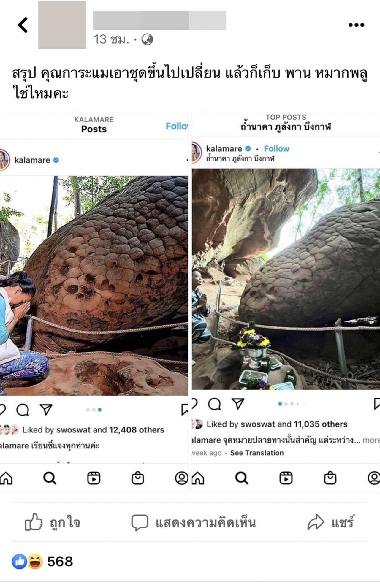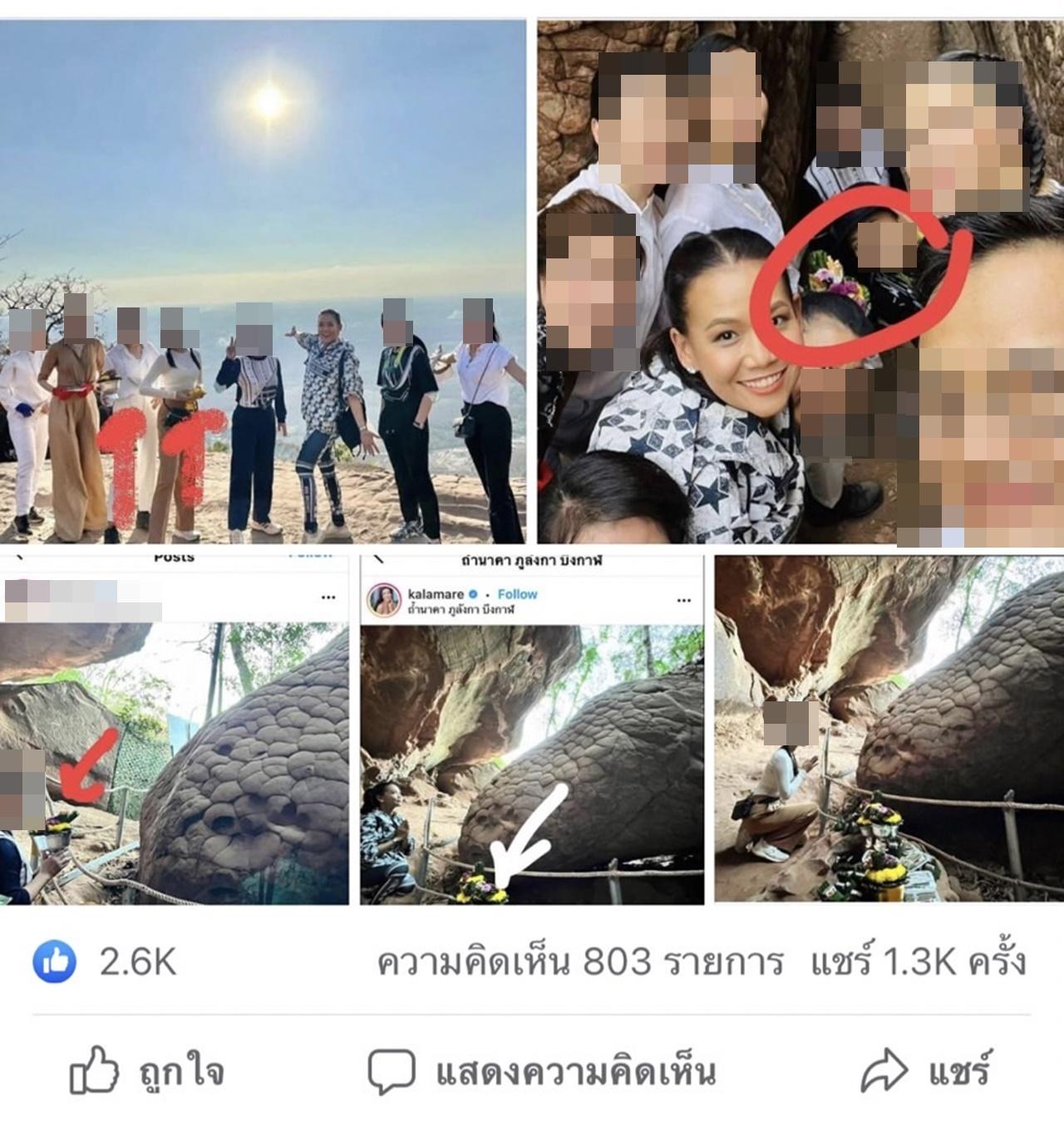 แต่หลังจากที่พิธีกรสาวชื่อดังได้ออกมาชี้แจงไปได้ไม่นาน งานนี้ก็มีชาวเน็ตรายหนึ่งได้โพสต์ข้อความพร้อมนำหลักฐานเป็นรูปภาพที่ กาละแมร์ ขึ้นไปไหว้ถ้ำนาคากับแก๊งเพื่อน พร้อมนำพานของไหว้ขึ้นไปด้วย โดยชาวเน็ตคนดังกล่าวได้เขียนข้อความเอาไว้ว่า "คุณกาละแมคะ ทำไมคำพูดคุณไม่เคยมีความจริงเลย