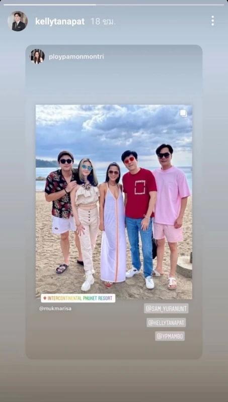ส่วนใหญ่พลอยจะคุยกับภรรยาพี่ ภรรยาพี่มีเฟซบุ๊กกัน เขาเป็นเฟรนด์กัน พี่ไม่ค่อยได้เล่นมากนัก ก็เลยไม่ค่อยรู้ เขาก็มีอัปเดตกันอยู่เรื่อย ภรรยาพี่รู้จักครอบครัวพี่มากกว่าตัวพี่เองอีก พอพี่ถามเรื่องนี้เขายังงงเลย บอกว่าไม่รู้เรื่องเลย พี่มุกก็พุ่งไปหาพลอย เพราะพี่มุกไม่รู้จักเคลลี่ แต่พี่เห็นเคลลี่ก่อน ตอนนั้นทุกคนใส่หน้ากาก เราก็จะเห็นเคลลี่ในระยะไกล ก็ไม่อยากจะไปก้าวก่ายว่าเคลลี่มากับผู้หญิงคนไหน ไม่รู้อยู่ในวงการหรืออะไรไหม เดี๋ยวจะทำให้เขาอึดอัด ก็เหมือนเราสมมติเราอยู่ตรงไหน แล้วใครมายุ่งกับเรามาก บางครั้งเราอาจจะอึดอัดเช่นกัน”.