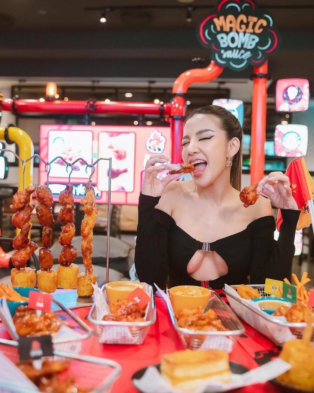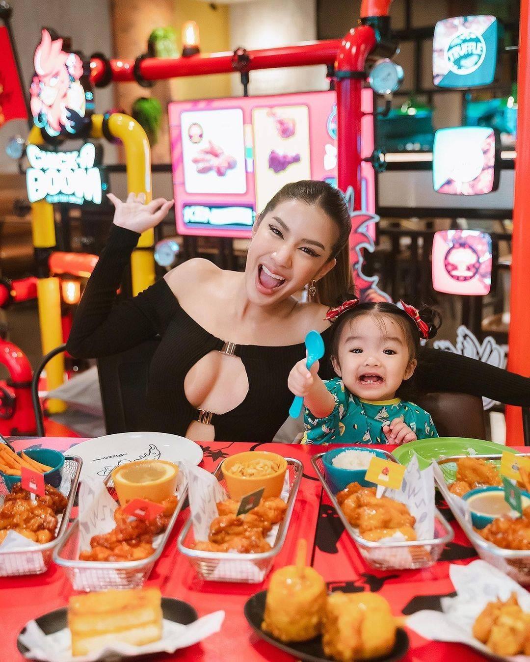 ล่าสุด ใบเตย อาร์สยาม โพสต์ภาพตัวเองในชุดเดรสสีดำ แต่เป็นชุดเดรสที่แซ่บไฟลุกมาก เพราะเล่นแหวกจากอกจนถึงสะดือเลยทีเดียว เห็นความตู้มต้ามของหน้าอกหน้าใจแบบเต็มๆ เผยผิวขาวเนียนตา แถมยังพา น้องเวทมนต์ ลูกสาว ไปทานไก่ทอด พร้อมทั้งโพสท่ากินไก่แบบแซ่บๆ ตามสไตล์ของใบเตย