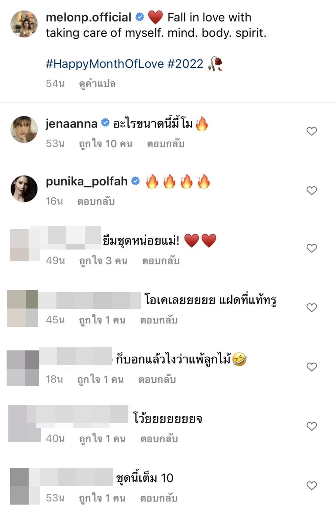 งานนี้ทำเอาเพื่อนทั้งในและนอกวงการบันเทิง รวมไปถึงแฟนคลับต่างร้องว้าวกันเป็นแถว พร้อมกระหน่ำกดไลค์กันรัวๆ และเข้ามาคอมเมนต์บอกว่า อะไรขนาดนี้มี้โม, ยืมชุดหน่อยแม่!, เกินไปล้าวววว สะท้านโลกไม่ไหว, ชุดนี้เต็ม 10, ต๊าชมากมิ้, เซ็กซี่มาก.