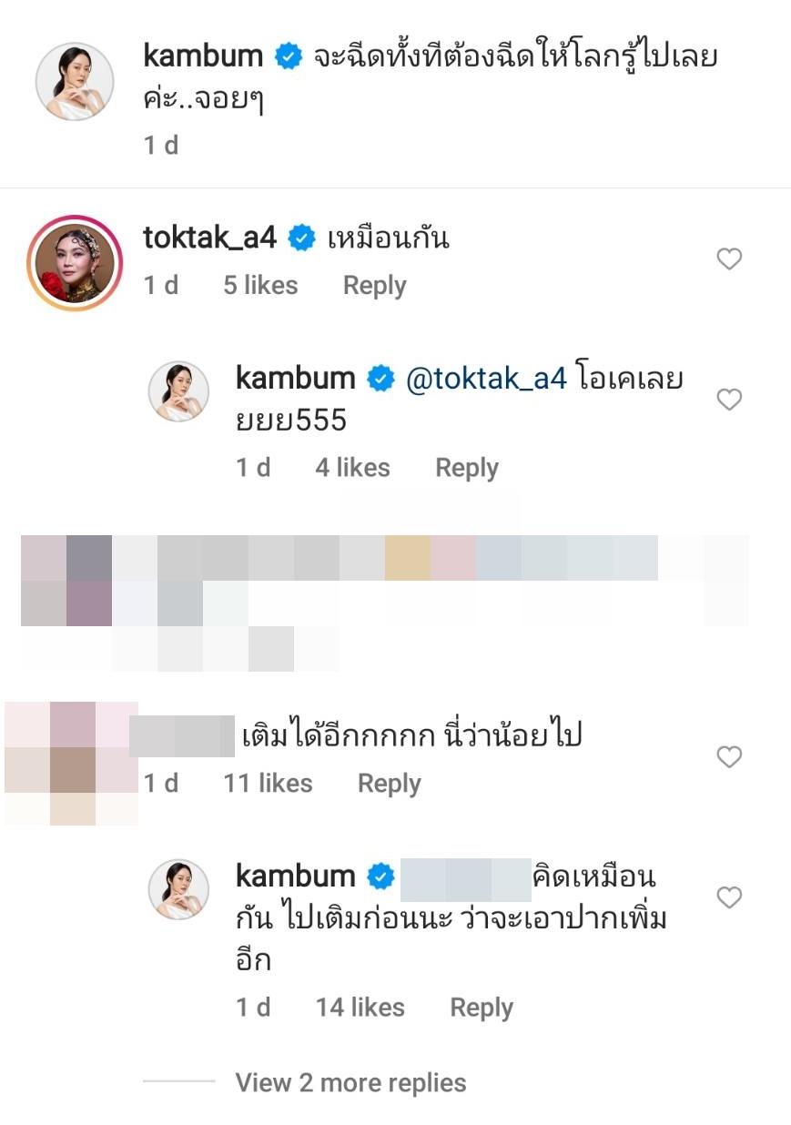งานนี้ทำเอาแก้มบุ๋มดูจะถูกอกถูกใจเพราะใช้ฟิลเตอร์แต่งภาพ แกงตัวเองจนหลายคนเชื่อว่าไปฉีดฟิลเลอร์มาจริงๆ ทำเอาเจ้าตัวถึงกับโพสต์คอมเมนต์ใต้ภาพว่า “โอเคคคคคคเป็นเรื่องเป็นราวกันไปเลยยยยยย5555” โดยมีแฟนๆ เข้ามาแสดงความคิดเห็นอีกหลายข้อความ.