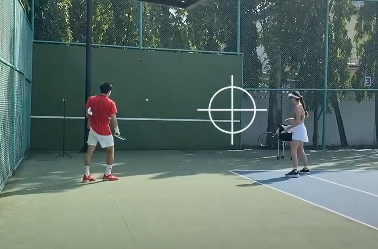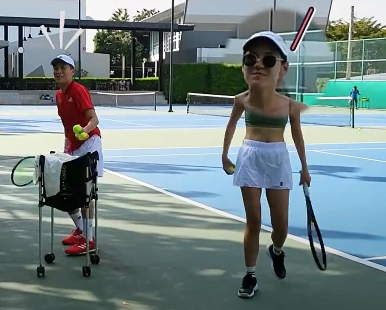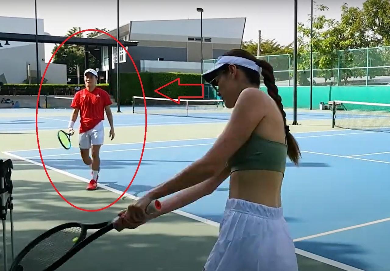 โดยในคลิป 5 นาทีจะปรากฏ ผู้ชาย เสื้อแดง ดูดี ซึ่งระหว่างนั้นสาวเพชรก็จะแซวจิ๊บอยู่ตลอดว่า เธอนัดให้จิ๊บ และผู้ชายมาเจอกันผ่านการตีเทนนิส