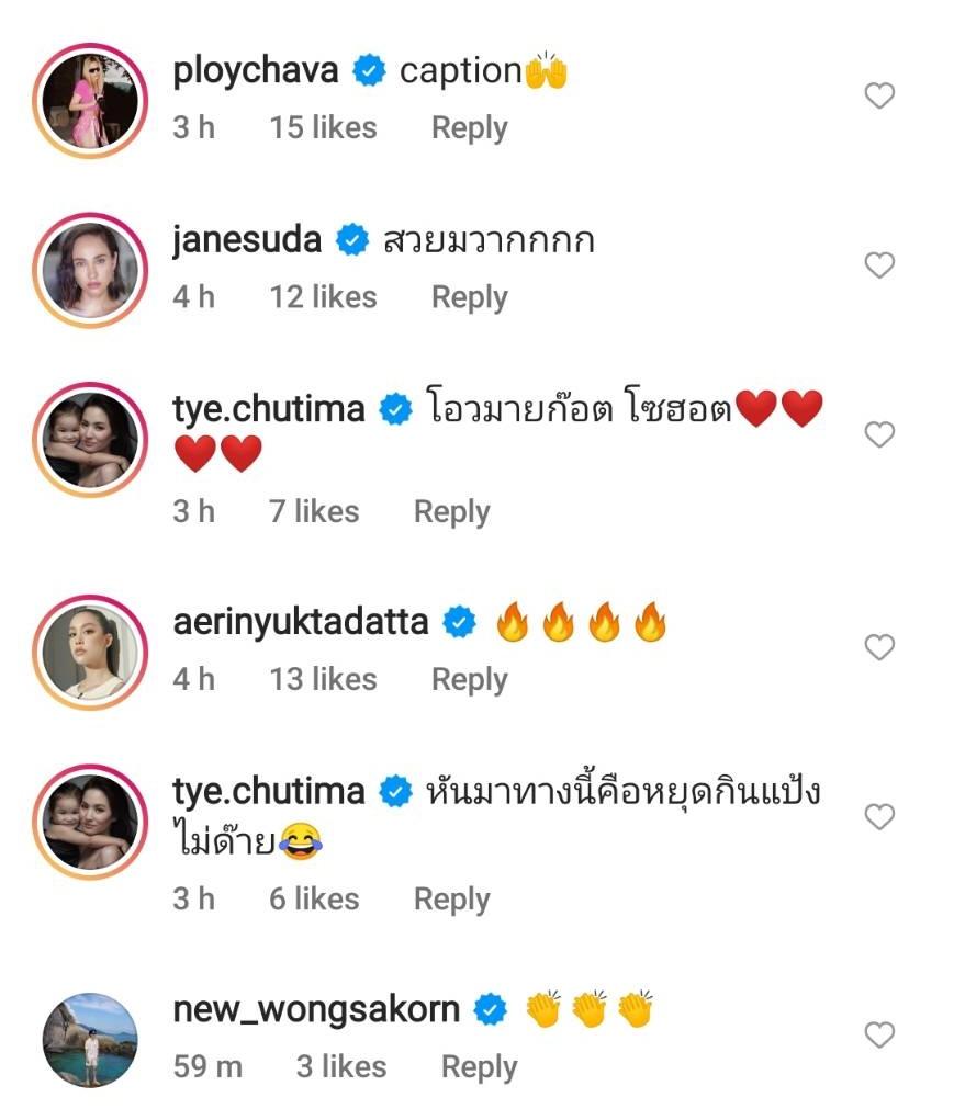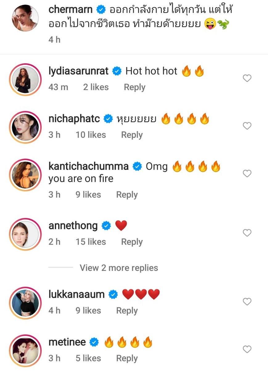 ทำเอาแฟนๆ ที่ได้เห็นลุคนี้ของพลอยต่างกดไลค์ให้เลยรัวๆ ด้านคนบันเทิงก็แสดงความคิดเห็น อาทิ ลีเดีย ศรัณย์รัชต์ “Hot hot hot” ใส่อีโมจิไฟลุก, แพรวา ณิชาภัทร “หุยยยยย” ใส่อีโมจิไฟลุก, ติช่า กันติชา “Omg you are on fire”, ต่าย ชุติมา “โอวมายก๊อต โซฮอต หันมาทางนี้คือหยุดกินแป้งไม่ด๊าย” ฯลฯ